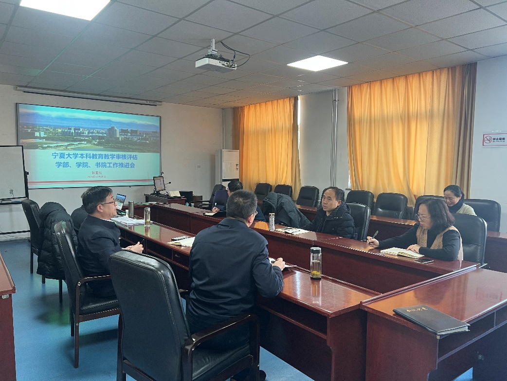 根据《普通高等学校本科教育教学审核评估实施方案(2021—2025年)》(教督〔2021〕1号)和《宁夏大学本科教育教学审核评估工作方案》等文件要求, 2024年1月5日下午,英国正版365官方网站在宁远楼314会议室召开了本科教育教学审核评估工作部署会。学术副校长王青云、学院领导班子成员、各系主任、专业负责人和课程团队负责人参加会议。会议由学院党总支副书记、副院长赵秉新主持。