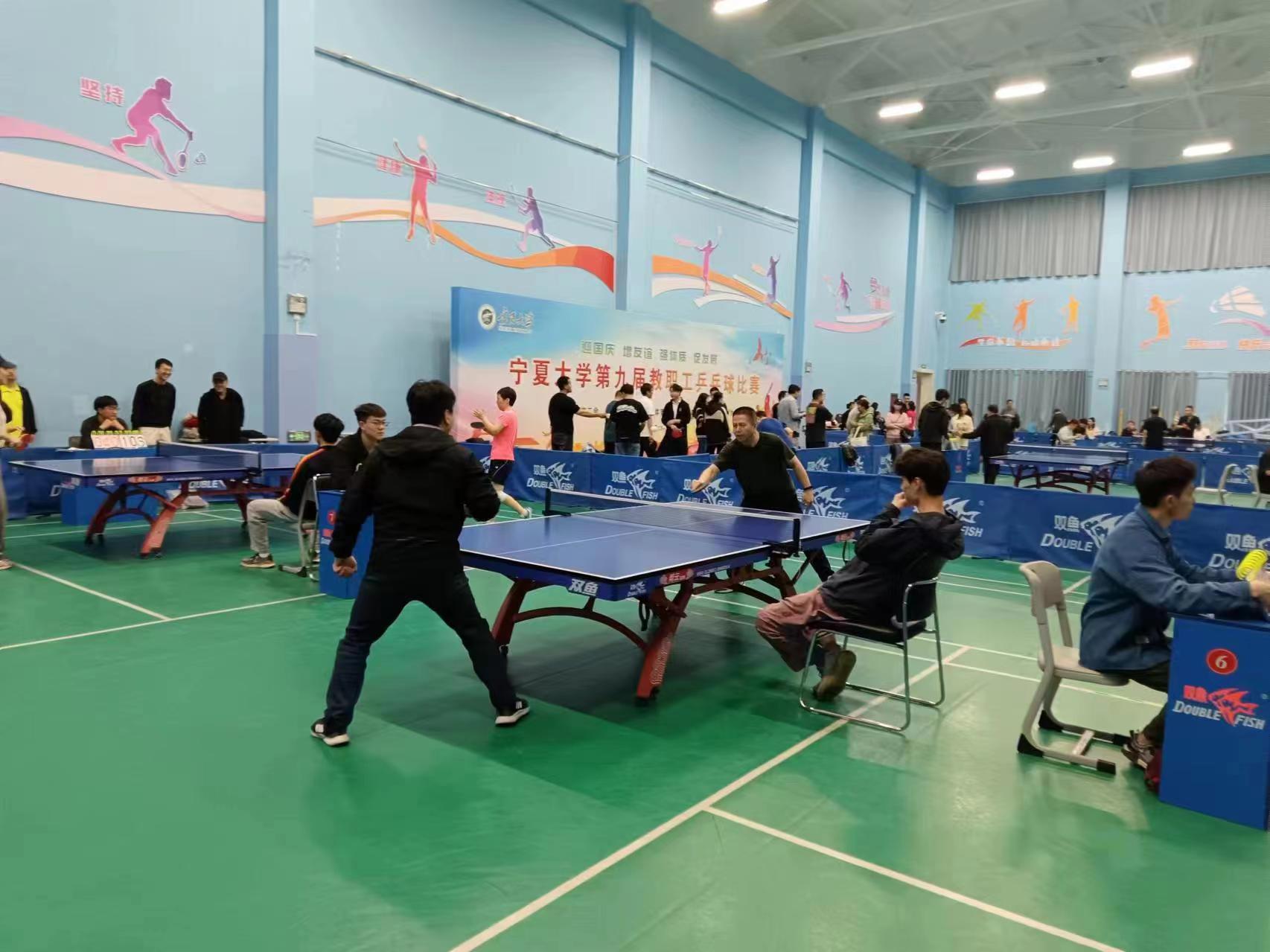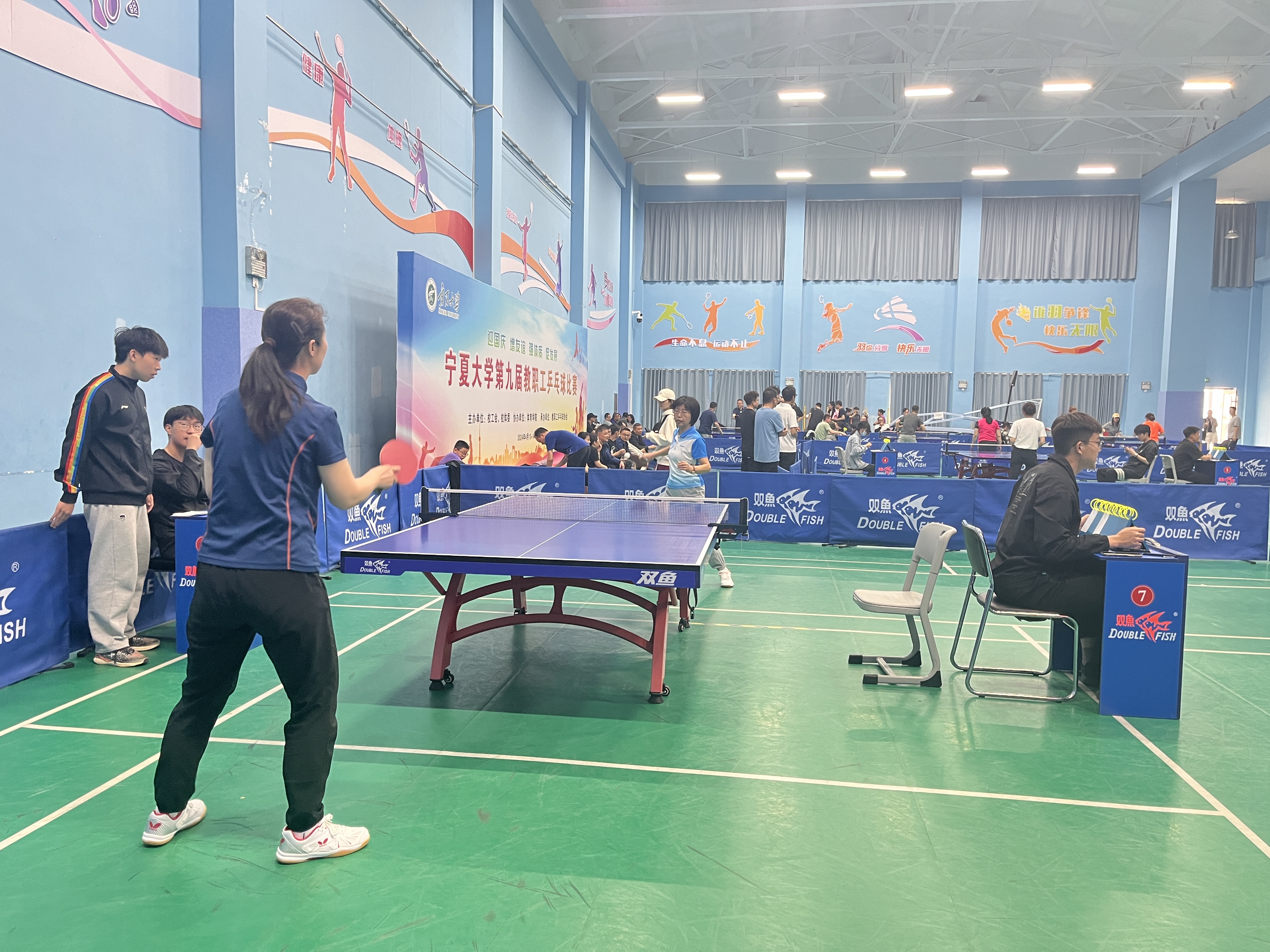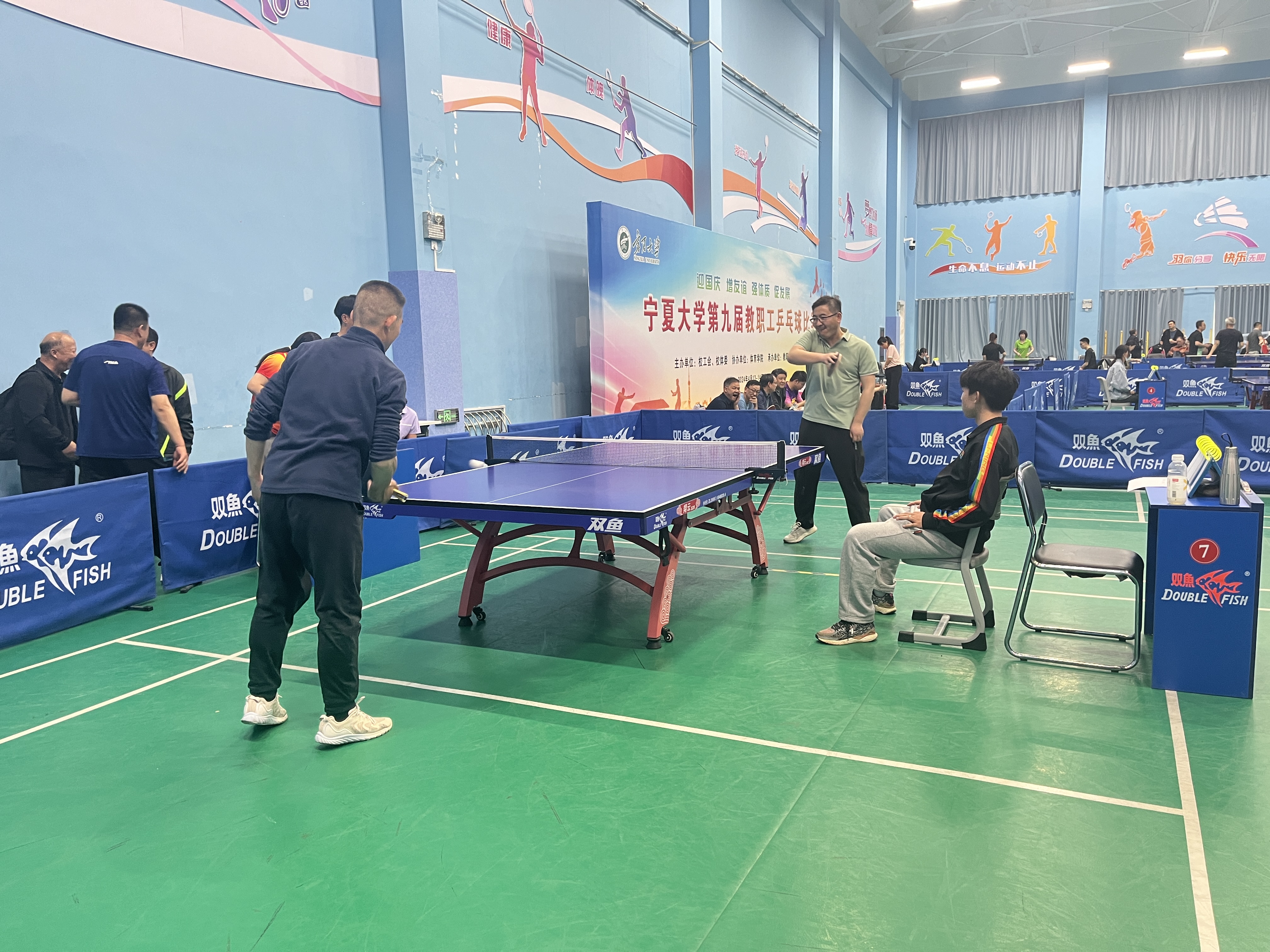 【图/岳红格 文/王惠方】4月13日至14日,宁夏大学第九届教职工乒乓球比赛在怀远校区体育馆举行。学院分工会组织6名教师参加了比赛。