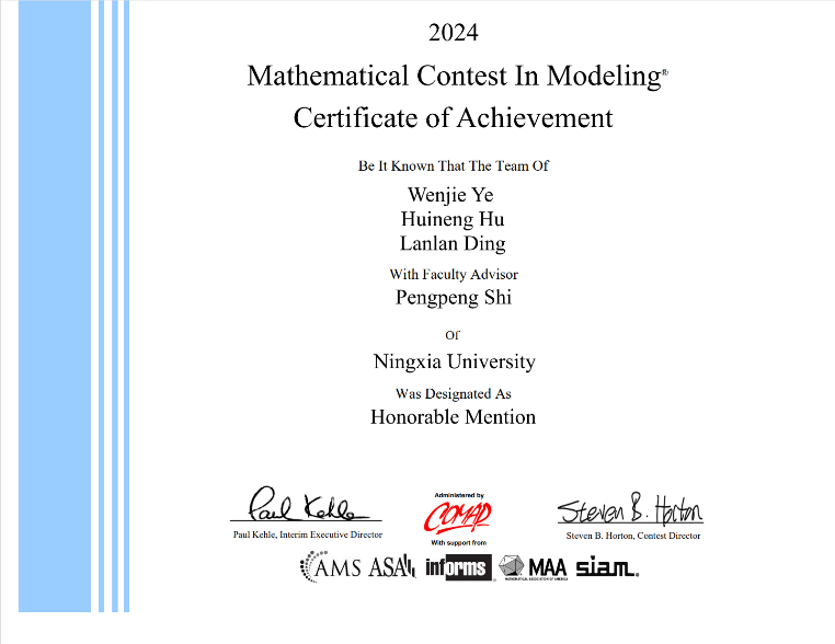 学院高度重视学生的创新创业工作,从政策、场地、资金等方面都对学生创新创业给予大力支持,近三年来,在美国大学生数学建模中英国正版365官方网站共荣获M奖1项,H奖9项。