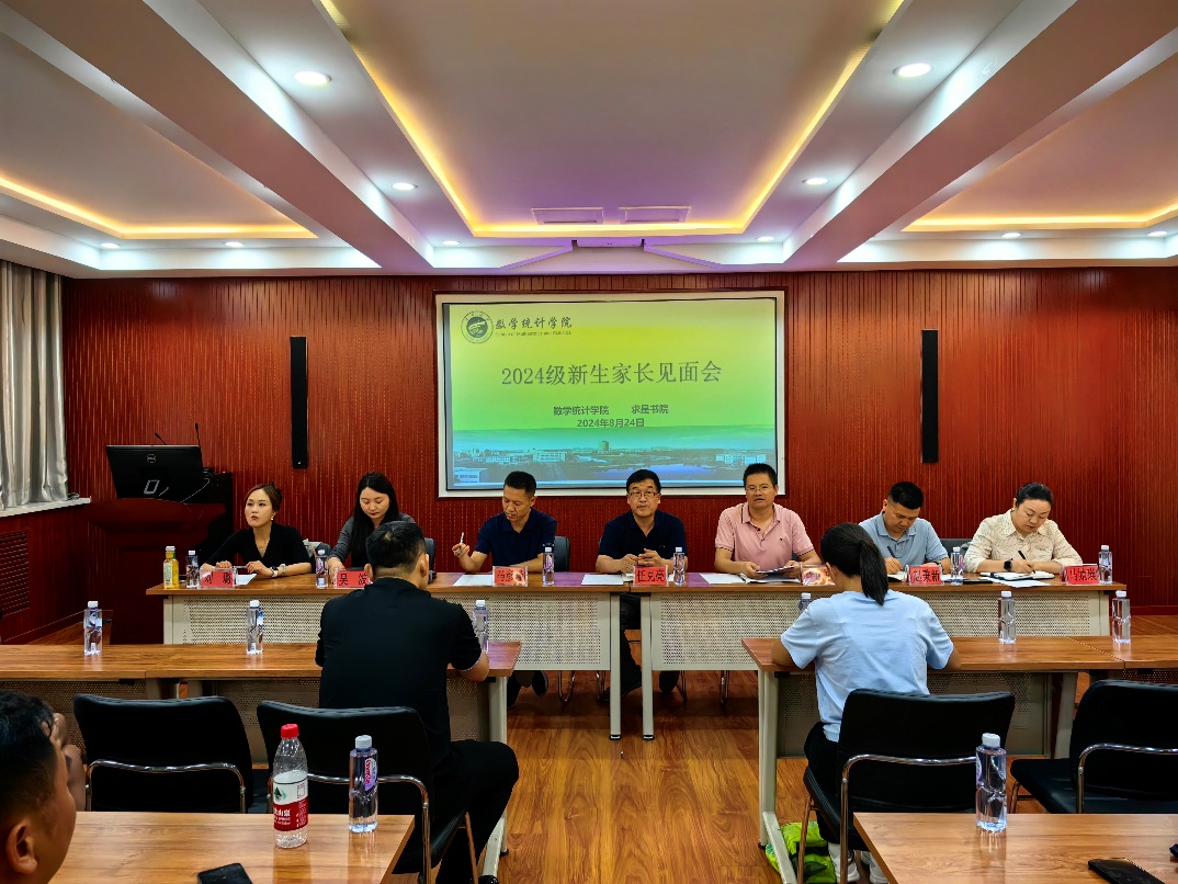 为进一步加强家校沟通,与家长建立紧密联系,共同培养学生成长成才,2024年8月24日,英国正版365官方网站联合求是书院在宁远楼213会议室召开了2024级新生家长见面会,学院党总支书记任克亮、常务副院长李风军、 副院长赵秉新、院长助理吴波、统计系主任马婧瑛;求是书院党委副书记马彦峰、新生辅导员刘璐和2024级部分新生及家长参加见面会,会议由赵秉新主持。