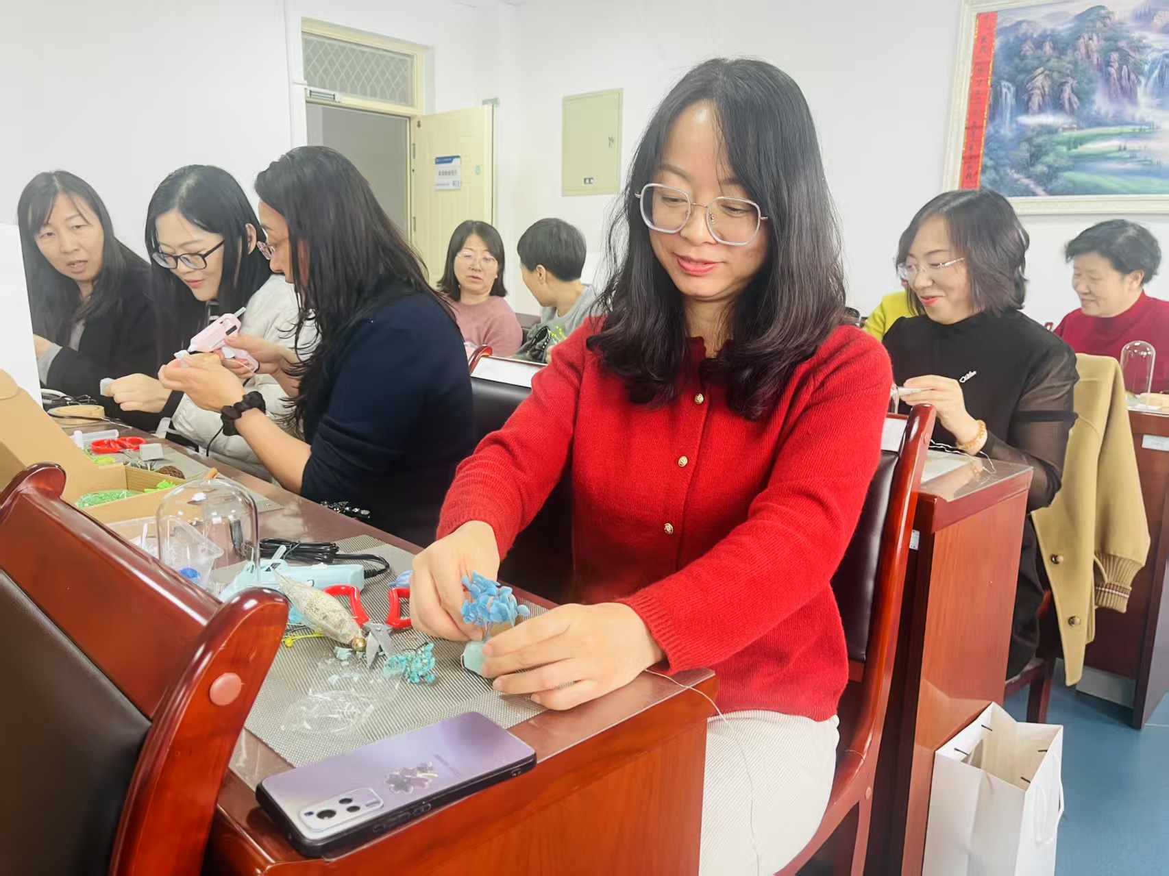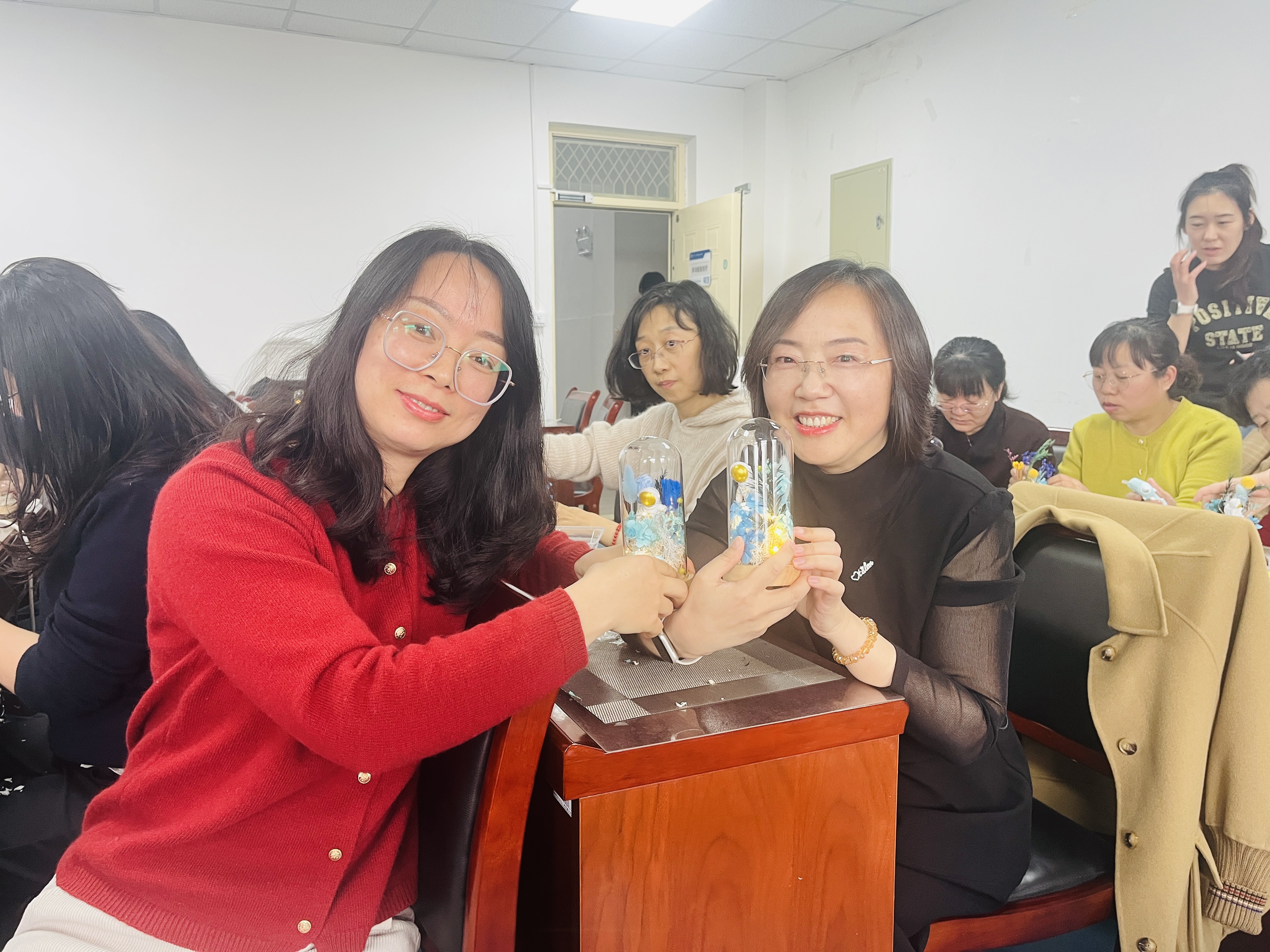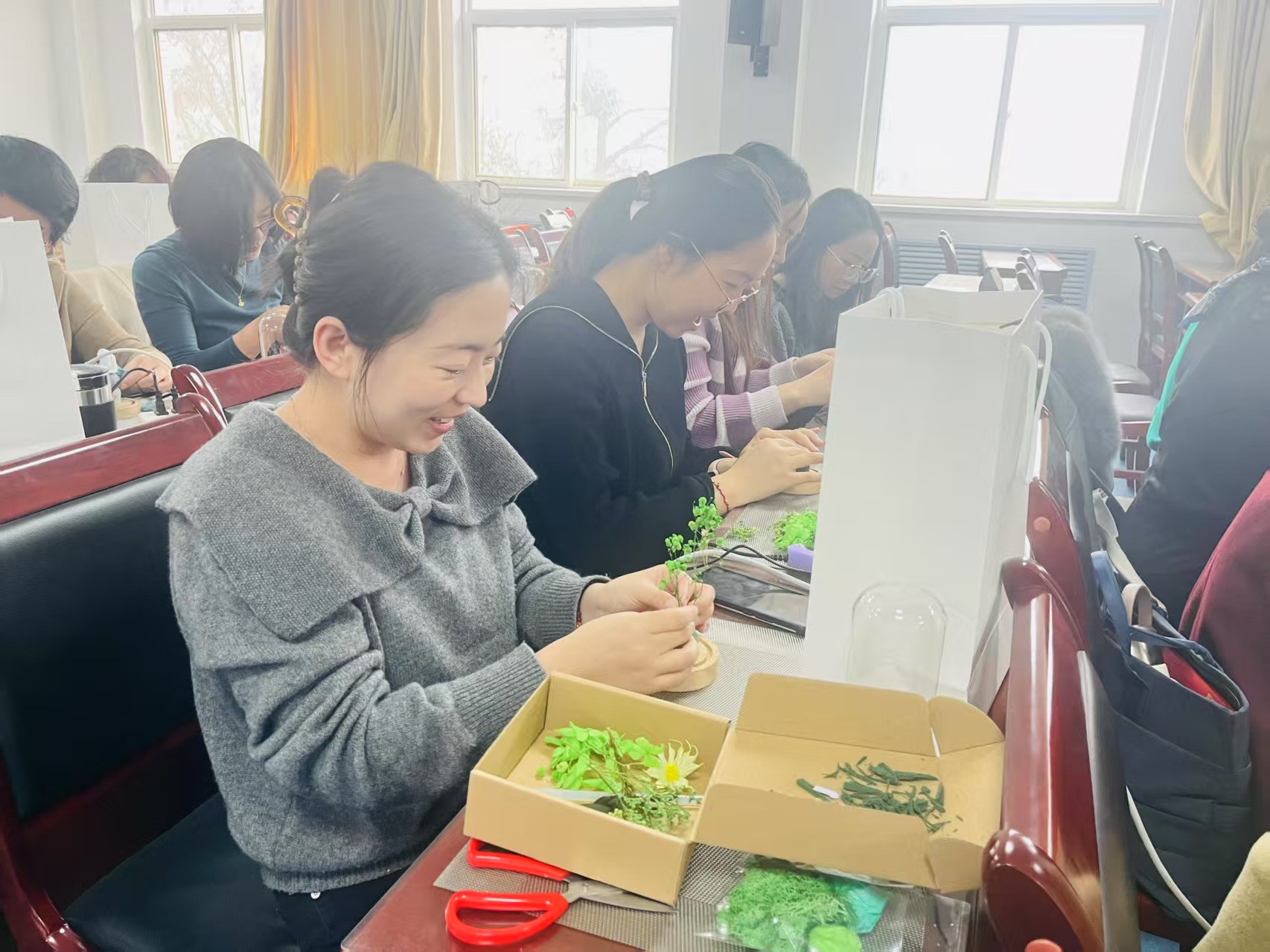 在专业人员的指导下,老师们纷纷化身为创意大师,将一片片永生花巧妙搭配,制作出风格各异的精美作品。制作永生花的过程,不仅是一场手工创作,更是一次心灵的治愈之旅。老师们在花材的排列组合间,舒缓了工作压力,寻回生活中的小确幸,感受着美好被永久留存的奇妙体验。