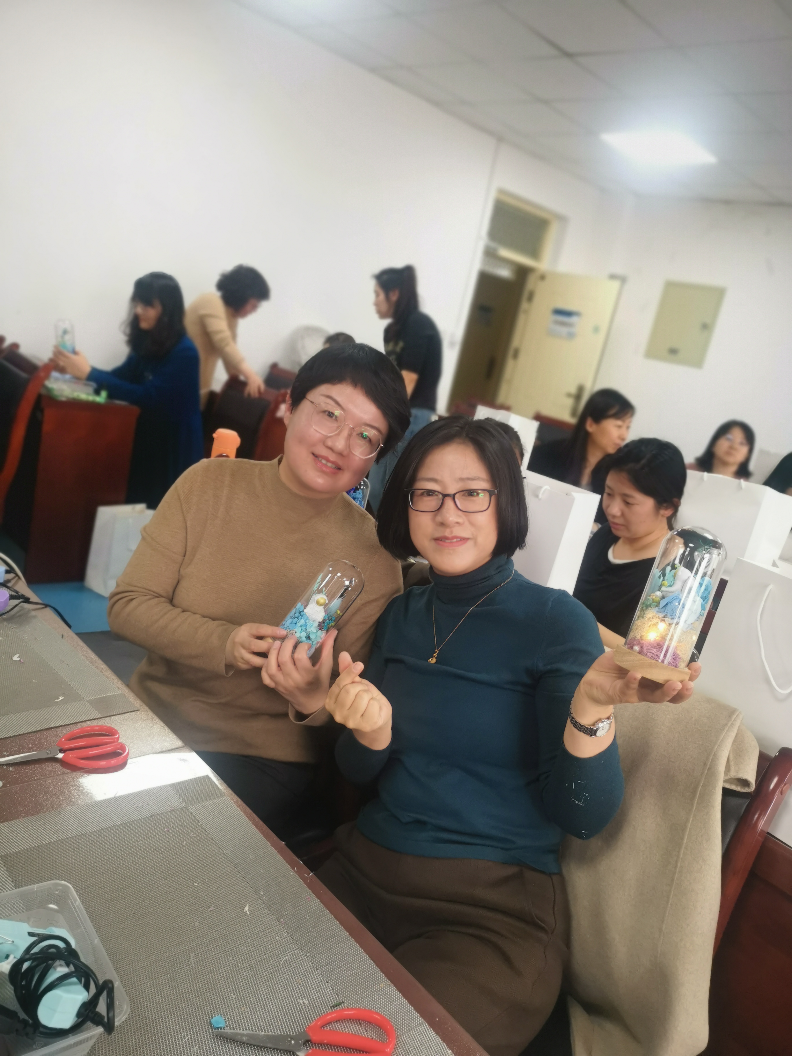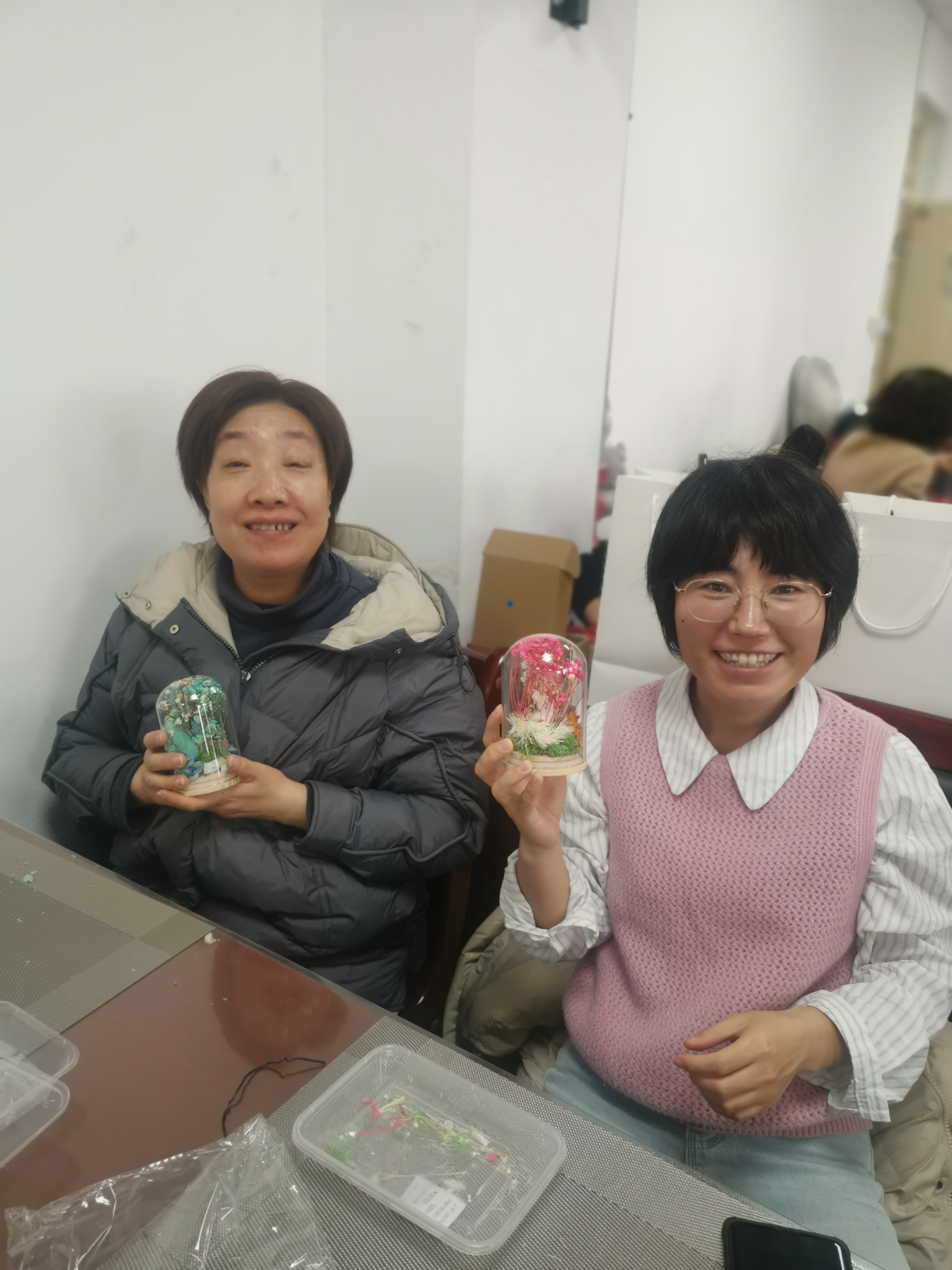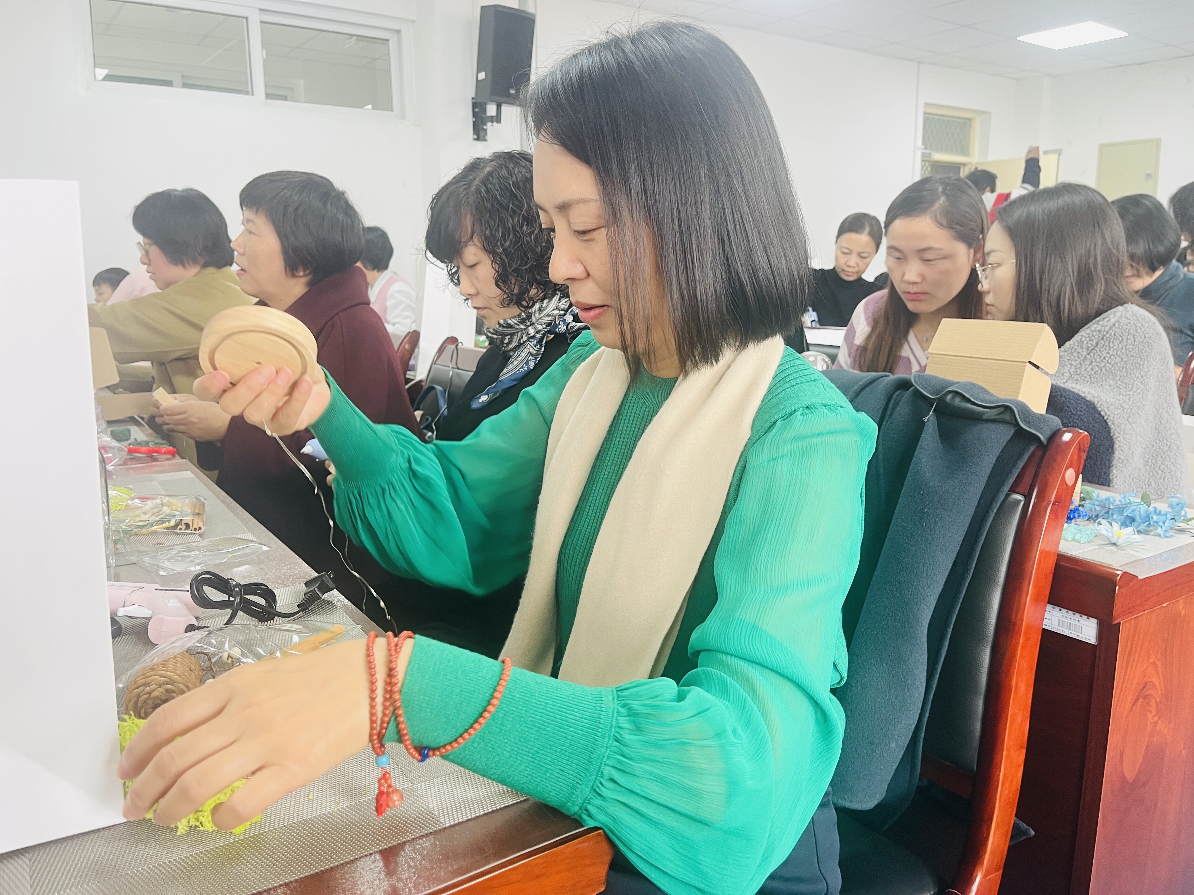 在专业人员的指导下,老师们纷纷化身为创意大师,将一片片永生花巧妙搭配,制作出风格各异的精美作品。制作永生花的过程,不仅是一场手工创作,更是一次心灵的治愈之旅。老师们在花材的排列组合间,舒缓了工作压力,寻回生活中的小确幸,感受着美好被永久留存的奇妙体验。