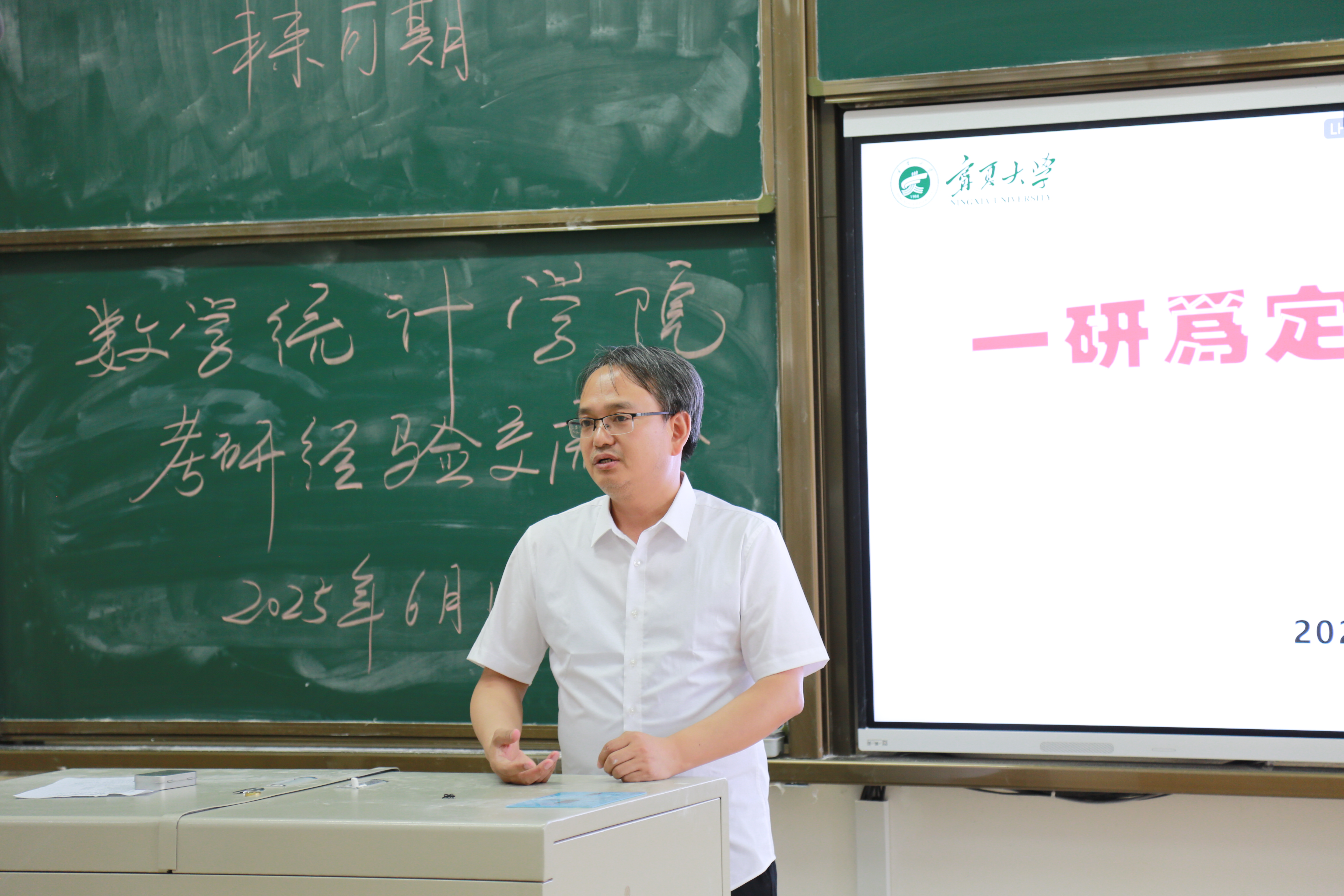 在经验分享环节,学院直博生李辉、在读硕士研究生何毅冰、2025年被宁夏大学录取的江旭分享了自己的成功经验。他们结合自身经历,围绕院校与专业选择、高效信息搜集方法、科学复习规划制定、各科目备考技巧、优质学习资源推荐、刷题策略、心态调整与压力管理等方面,进行了全面而实用的讲解。