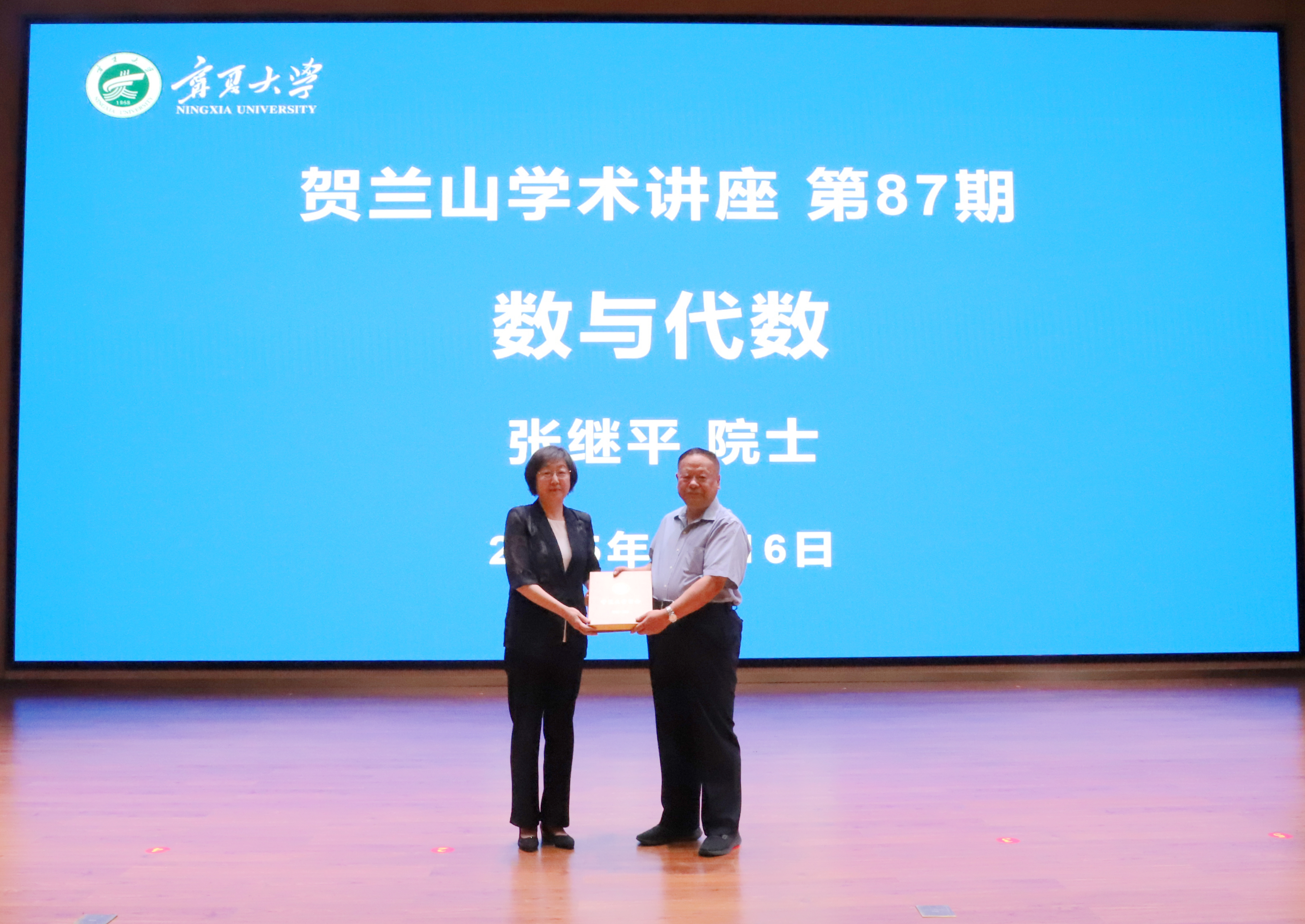 6月16日,北京大学博雅讲座教授、中国科学院院士、中俄数学中心主任张继平教授受邀在贺兰山校区笃行楼一楼报告厅为我校师生作题为《数与代数》的学术讲座,讲座由校党委副书记韩惠丽主持。来自各学院近300名师生在现场聆听了学术讲座。