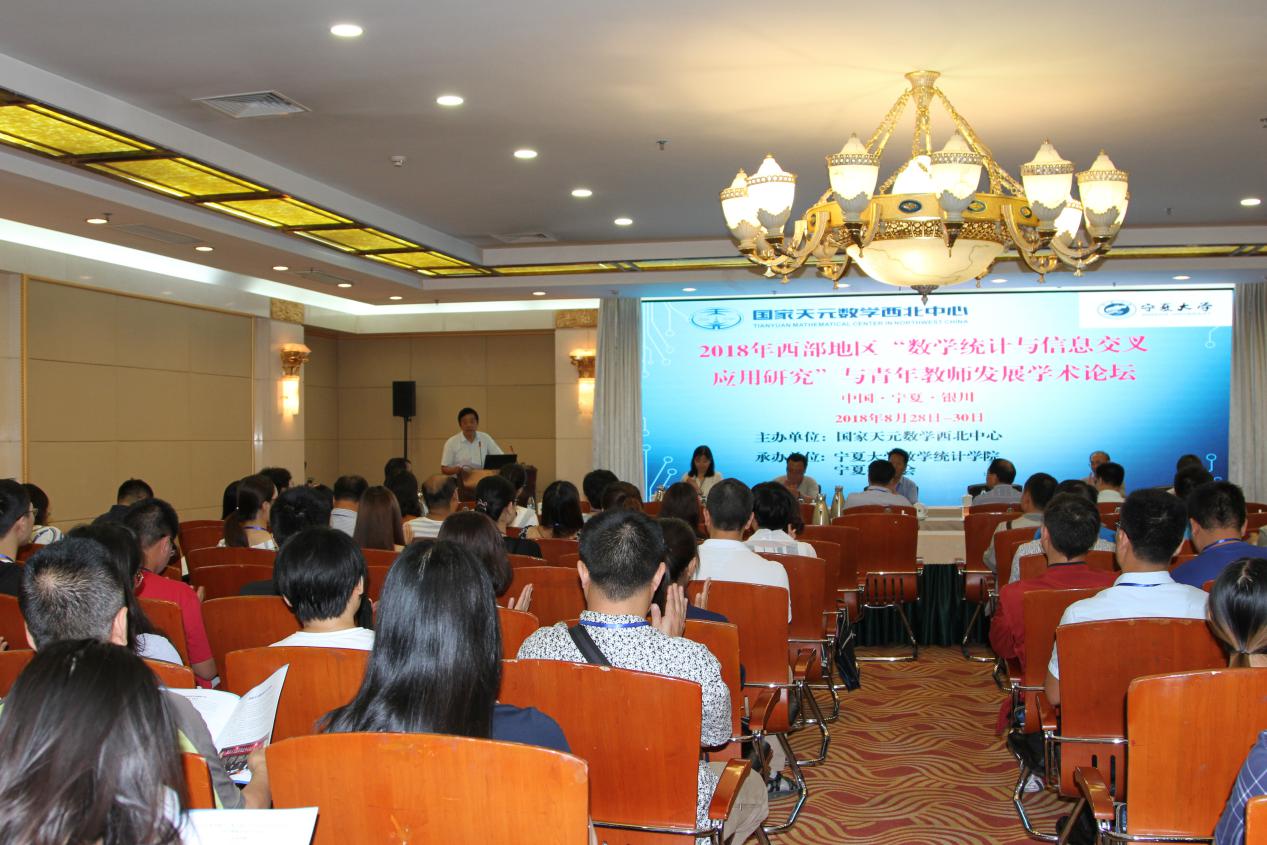 8月28日-30日,“2018年西部地区‘数学统计与信息交叉应用研究’与青年教师发展学术论坛”在宁夏银川成功举行。本次论坛是由国家天元数学西北中心主办,英国正版365官方网站、宁夏数学会承办,西安交通大学数学与统计学院、北方民族大学数学与信息科学学院、宁夏师范学院数学与计算机科学学院共同协办的。大会邀请来自复旦大学、西安交通大学、兰州大学、西北大学、西南大学、陕西师范大学、福州大学、宁夏大学、北方民族大学、宁夏医科大学、宁夏师范学院、中国矿业大学银川学院以及宁夏大学新华学院等国内从事数学、统计与信息交叉应用研究的近90名学者与宁夏高校的近60名研究生参加。