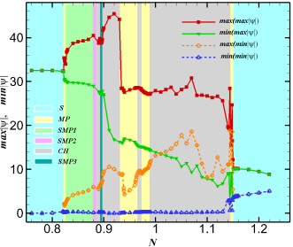 averaged distributions of time nodes in a complete period (dimensionless time interval is