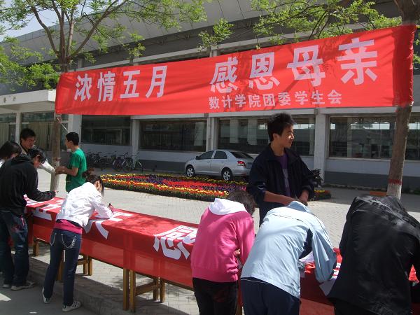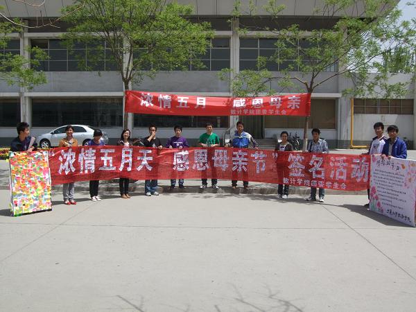 在一年一度的母亲节来临之际,数学计算机学院团委学生会于2010年5月9日星期日在C区第二餐厅门口举行了“浓情五月天,感恩母亲节”大型签字仪式。