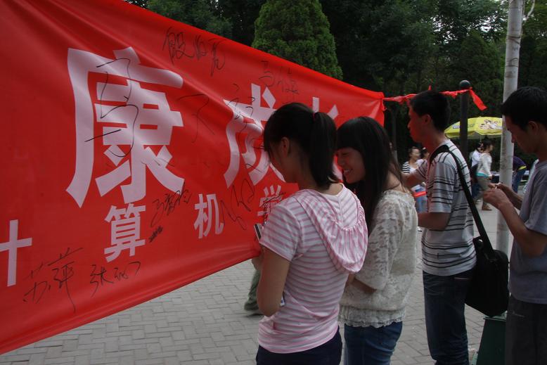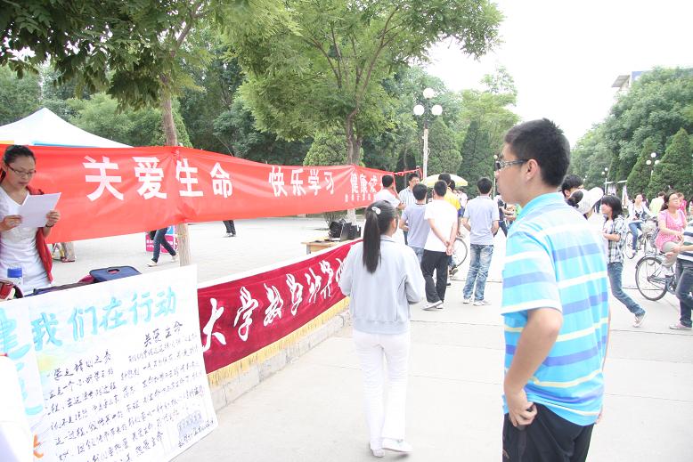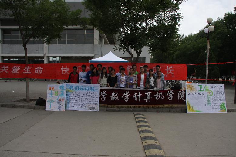 【数学计算机学院 乔楠】为提高大学生心理素质水平和个人身心健康修养,6月7日中午,数学计算机学院团委在C区二餐门前举行了以“呵护心灵 关爱生命 快乐学习 健康成长”为主题的签名活动。