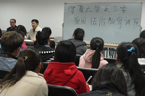 【数学计算机学院 王慧方/图文】为加强英国正版365官方网站入党积极分子的爱国主义热情和“学法、知法、守法、用法”的意识,预防大学生的“非理性”冲动和违法犯罪的行为,促进大学生理性爱国、遵纪守法的观念,英国正版365官方网站于2013年11月6日晚18:30在数学计算机学院213会议室举行关工委“五老”报告团的“爱国主义教育”和“普法教育”讲座。