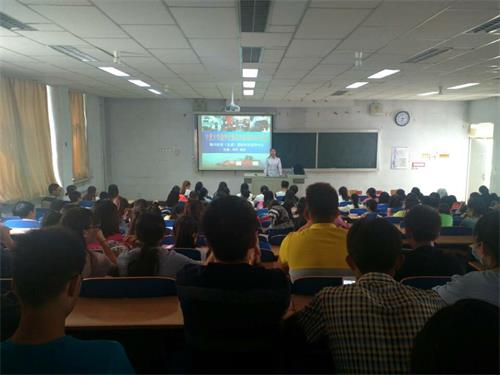 讲座中,李教官主要围绕地震逃生与火灾救援展开讲解,结合工作实际,采用了大量案例,以图文并茂的形式,围绕地震的损害、征兆及如何自救和火灾的类型、防范及灭火措施等知识和技能进行了深入浅出的讲解。李教官列举了很多导致火灾的不良习惯,譬如烟头香烛随意丢弃,生活用火的不规则使用,电线电器的违规使用与操作,她讲到这些习惯都是日常生活中的安全隐患,时刻威胁着我们的生命安全与人身财产。一个个鲜活生动的事例,让在场的同学们认识到面对灾难“防患于未然”的重要性,从而对日常生活中容易被忽视的一些陋习有了新的认识。同时李教官也向老师们讲解了初期火灾灭火技能、火场逃生疏散,以及消防设施的正确使用方法和技巧。