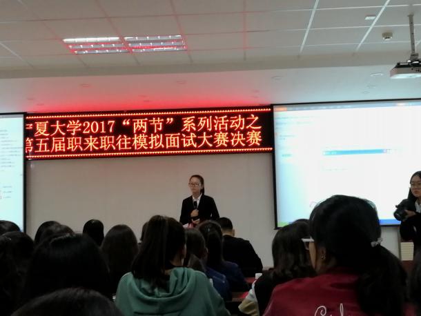 为提升学生求职面试技能,10月18日晚七点于宁夏大学贺兰山校区文荟楼三楼316MBA教室举行第五届职来职往模拟面试决赛。
