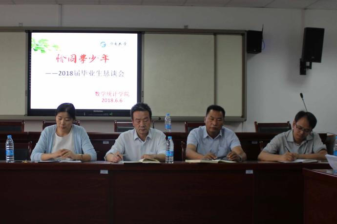 2018年6月6日下午三点,英国正版365官方网站组织14级毕业生于学院楼413会议室召开“2018届毕业生恳谈会”。出席此次会议的有学院党委书记刘富祥老师、学院院长冯秀芳老师、学院党委副书记纳殿文老师、丁大勇老师、学院副院长刘国军老师、汪文帅老师、大四任课老师、各年级辅导员老师以及研究生代表。此次会议由学院党委副书记丁大勇老师主持。