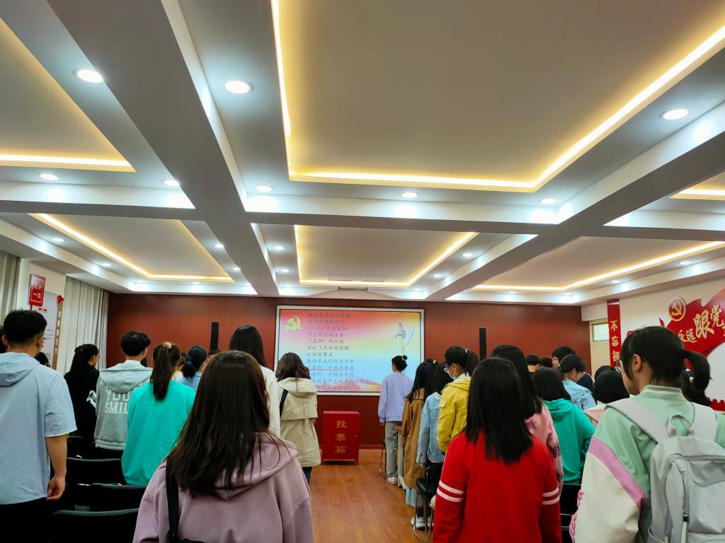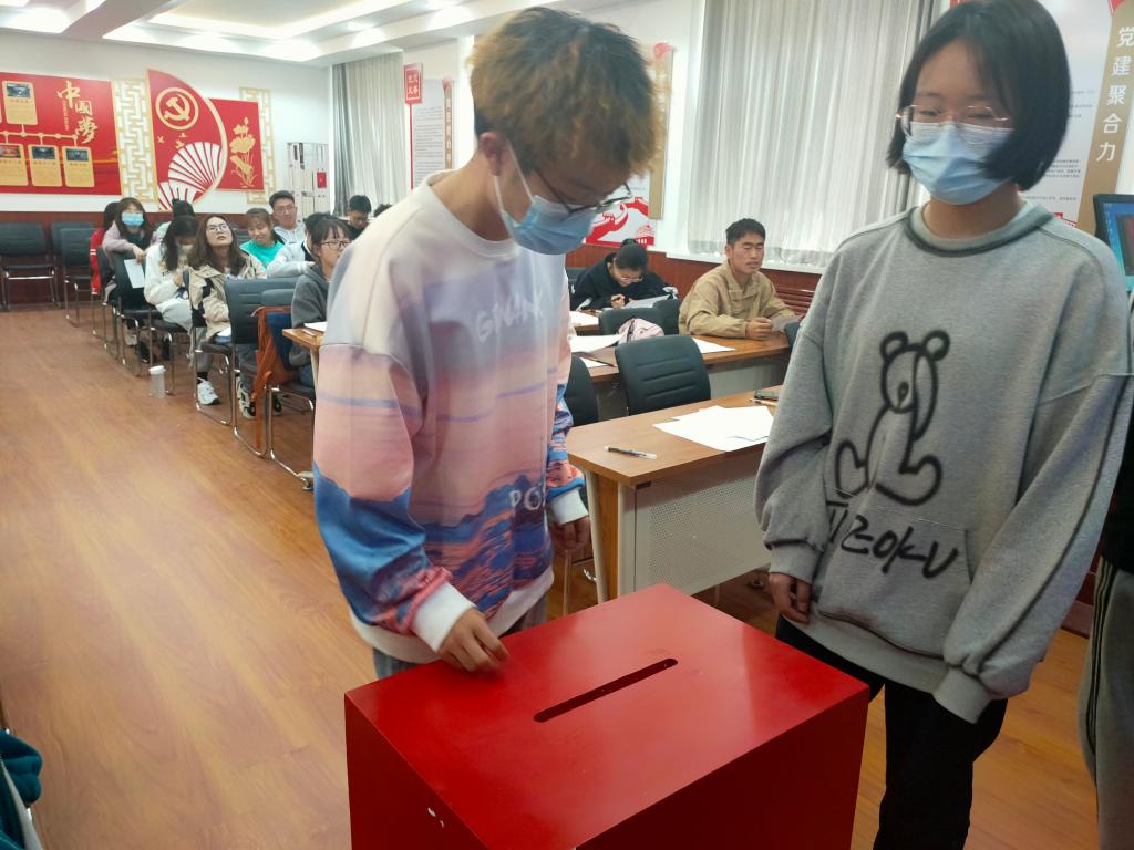会议伊始,社团负责人对社团团支部的成立条件以及成员条件进行了说明与介绍,随后,全体团员起立,奏唱团歌。一曲慷慨激昂的团歌结束,主持人宣布会议下一项——团支部委员选举。主持人对选举方法以及选举条件进行说明,并对被选举人进行介绍,投票也随之正式开始,本着投票公平,公正,公开的原则,检票人首先对检票箱进行检查,随后,投票人员依次有序上台进行投票,投票结束后,检票人员对选举结果进行公示,至此,大会圆满结束。