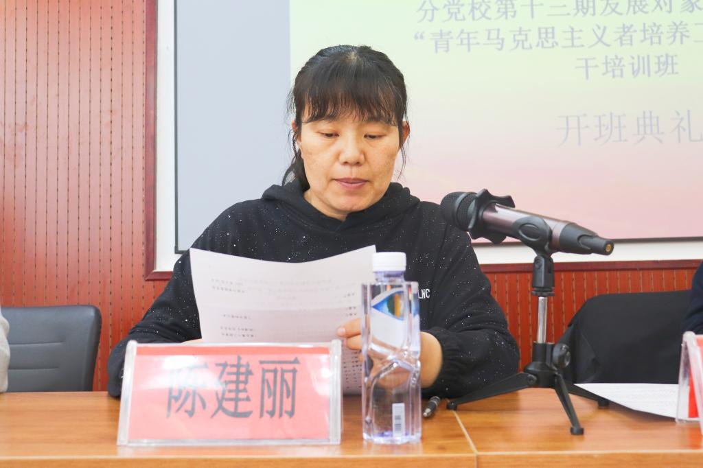 会议在庄严肃穆的国歌声中拉开序幕。大会伊始,陈老师致开场辞,然后由郑轶老师宣读英国正版365官方网站《关于举办第十三期发展对象培训班的通知》及学员名单,陶佳玲老师宣读英国正版365官方网站《关于举办第十三期“青年马克思主义者培养工程暨团学骨干”培训班的通知》及学员名单,陶老师就培训宗旨、培训内容及形式、培训时间、考核办法和要求等进行了详细说明。