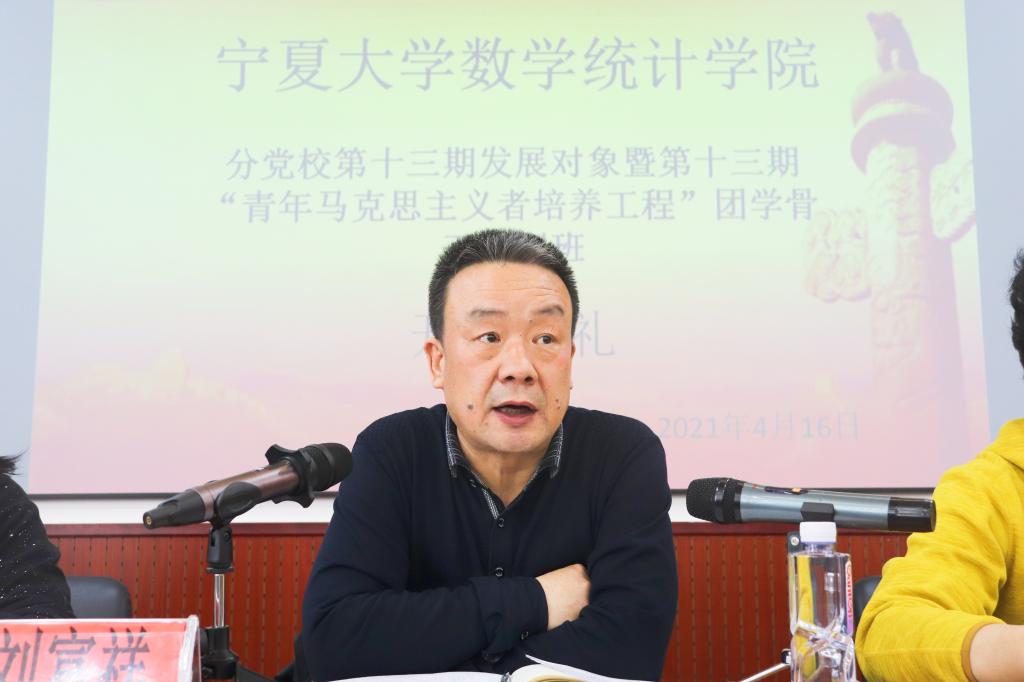 为学习贯彻党的十九大精神,全面开展好党史学习教育,也为做好发展对象的教育培养工作,英国正版365官方网站于2021年4月16日中午12时50分在怀远校区宁远楼213室举行“英国正版365官方网站分党校第十三期发展对象暨第十三期‘青年马克思主义者培养工程’团学骨干培训班开班典礼”,此次开班典礼由英国正版365官方网站党委副书记陈建丽老师主持,学院党委书记刘富祥老师,学院党委副书记郑轶老师,学院团委书记兼学办主任、研究生辅导员、数学教育党支部书记陶佳玲老师,2017级、2019级、2020级辅导员、数学综合党支部书记刘璐老师,以及全体分党校培训班学员共同参与。