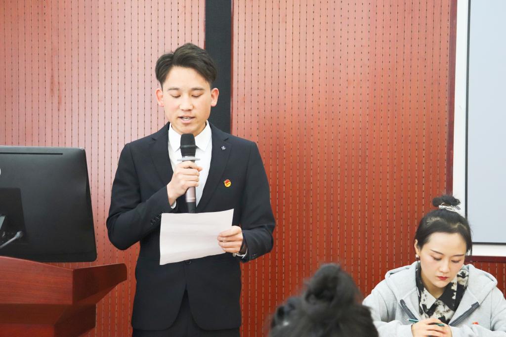 接着,本期培训班学员发展对象代表申玉荣同学发言,她郑重承诺将严于律己,提高思想觉悟,做到坚持“三个不”,饱含“三情”,做到“三个绝对”,以实际行动来接受党组织的考验。之后,青马工程培训班学员代表贺维明同学发言,他提出要坚定共产主义信仰,从自身做起,加强自身道德修养,不断完善自我,运用马克思主义武装自己,实现人生价值。