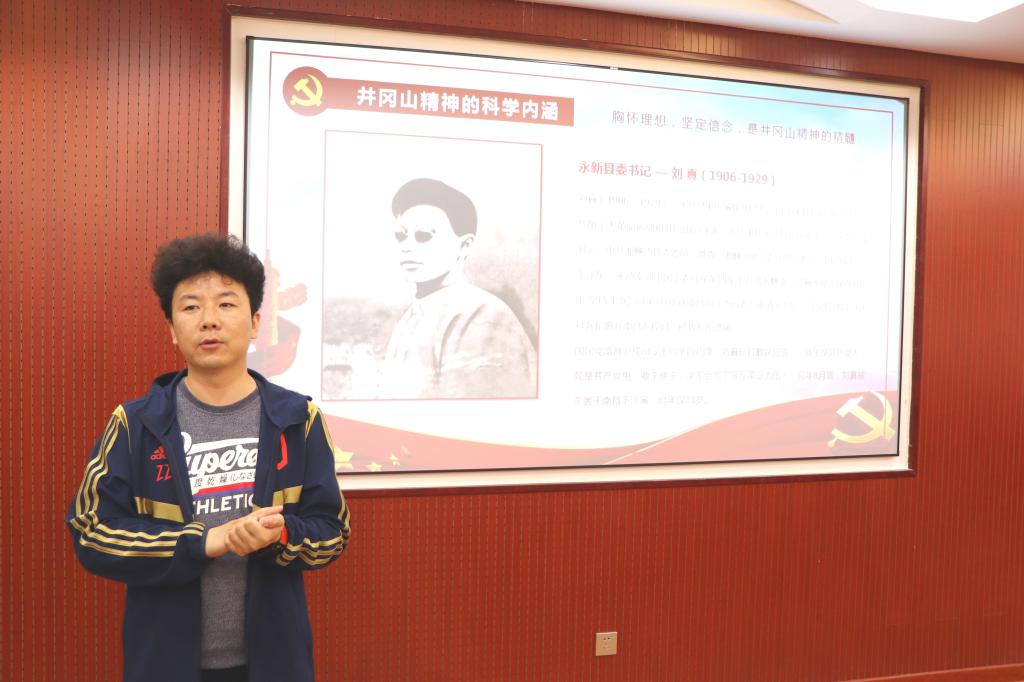 党课伊始,郑轶老师就“星星之火,可以燎原”引出了同背景下的井冈山之行,他从“井冈山革命根据地的建立”、“井冈山精神的科学内涵”、“井冈山精神的现实意义”以及“让井冈山精神放射出新的时代光芒”四个内容出发,让大家感受到井冈山革命根据地的创建对于中国革命和中国发展进步具有重大意义,它点燃了中国革命的星星之火,开辟了一条“农村包围城市、武装夺取政权”的中国革命的正确道路,创建了中国革命的第一个红色政权。党课最后,郑轶老师也以自身经历为例,鼓励新时代下的我们要回顾历史、怀揣梦想、脚踏实地。