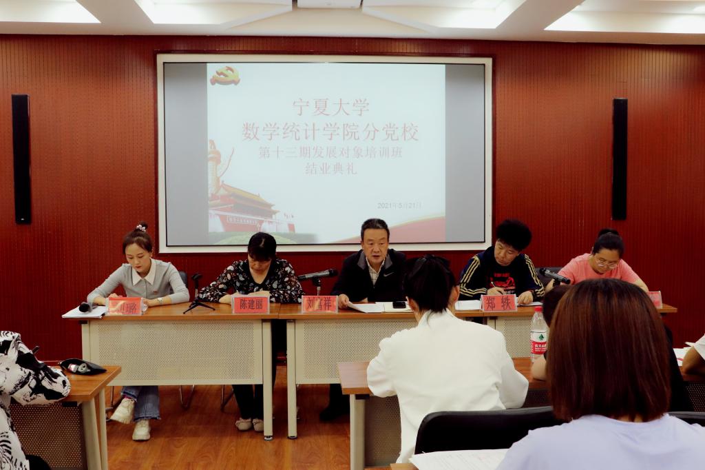 2021年5月21日中午12时50分,英国正版365官方网站于怀远校区宁远楼213会议室举行“英国正版365官方网站分党校第十三期发展对象培训班结业典礼”,此次结业典礼由英国正版365官方网站党委副书记陈建丽老师主持,出席本次会议的有学院党委书记刘富祥老师,学院党委副书记郑轶老师,学院团委书记兼学生工作办公室主任、数学教育党支部书记陶佳玲老师,数学综合党支部书记刘璐老师。第十三期发展对象共49名学员参加。