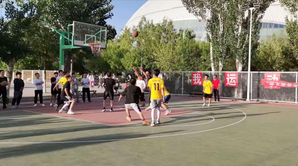 为丰富大学生的课余生活,提高大学生的综合素质,加强团队精神和凝聚力,2021年5月27日下午6时30分,英国正版365官方网站体育部组织举办的“我为同学办实事”-“以体育人,为爱而赛”之篮球杯比赛在文萃校区篮球场拉开了帷幕,英国正版365官方网站学生自行组队参与。