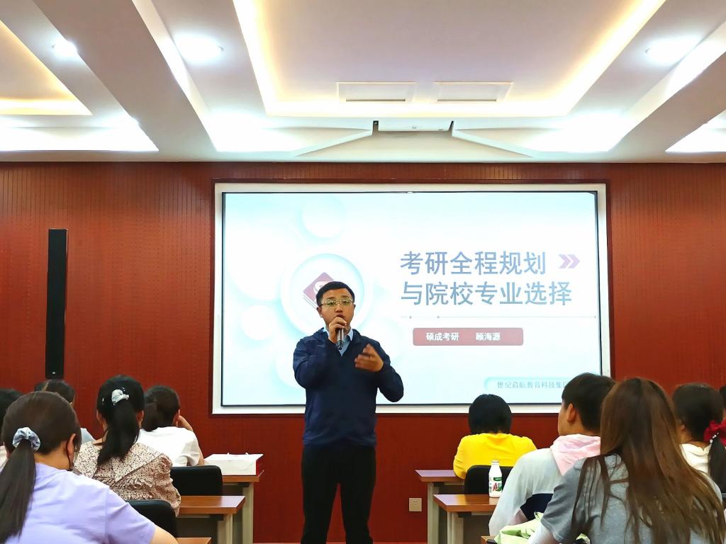 为提高同学们对研究生入学考试的认识,明确考研目标,学习相关考研技巧,2021年6月1日晚7时,硕成考研指导团队在宁远楼213举行了考研专业规划讲座,由考研指导专家顾老师主讲,部分学生参加讲座。