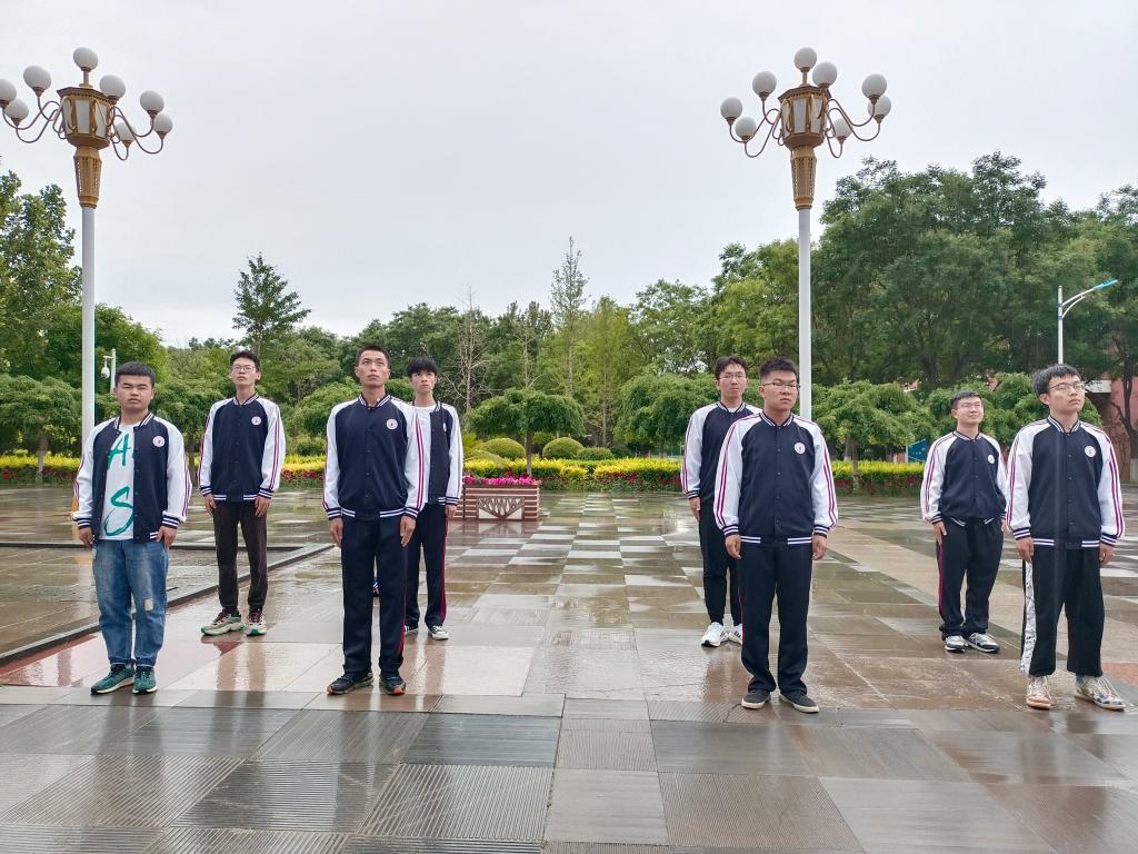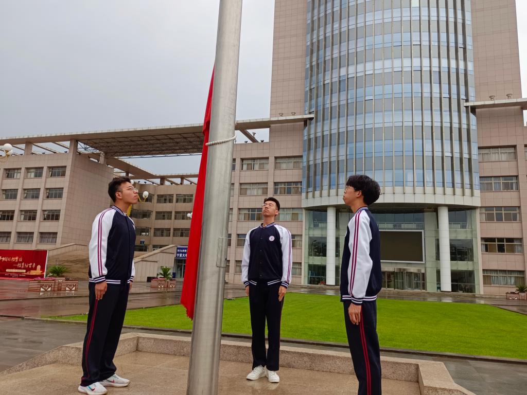 英国正版365官方网站19名2020级同学组成本次国旗护卫队。一声号令:“升旗仪式现在开始!”“全体肃立,出旗!”阴雨绵绵,依旧阻挡不了他们慷锵有力的脚步。口令出发,一面鲜红的五星红旗在护旗手的护送下,缓缓抵达旗杆下。接着,队长发出号令:“升国旗,唱国歌!”旗手挥臂抛出,五星红旗随风冉冉升起。全体成员庄严肃穆行注目礼,高唱国歌,“起来,不愿做奴隶的人们!……”