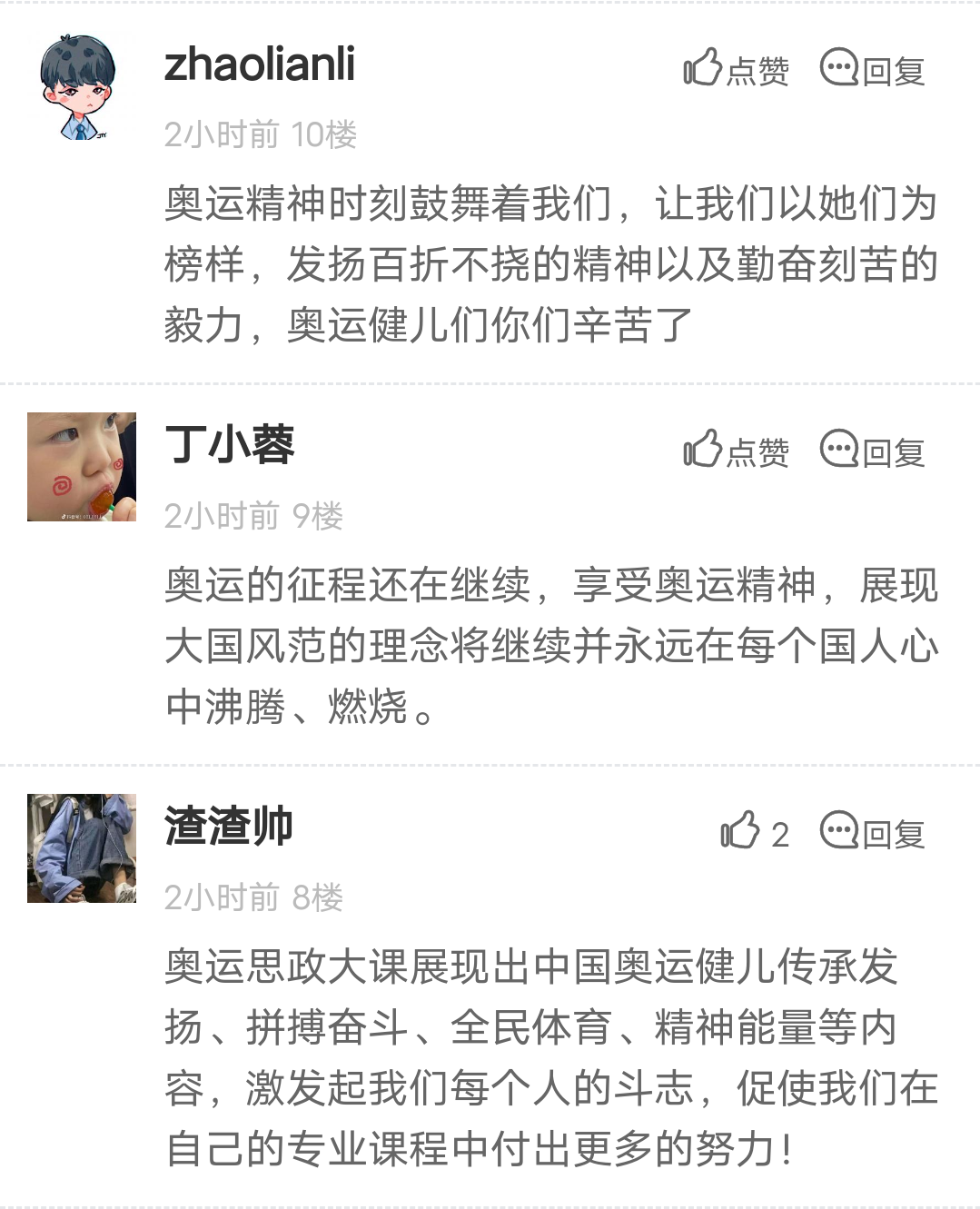 观看结束,英国正版365官方网站组织同学们在易班App上进行撰写观看感悟,表达数统学子对奥运健儿的敬意和赞扬。生命不息,运动不止。