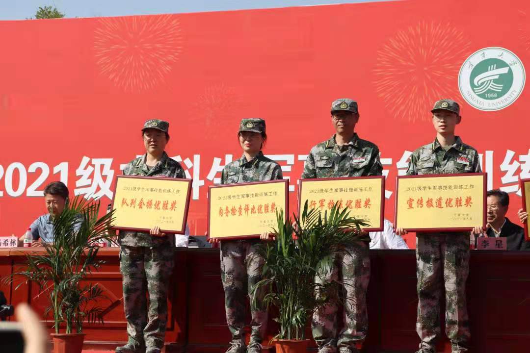 9月30日上午,在宁夏大学2021级本科学生军训科目汇报表演暨总结表彰大会上,对6个考核单项奖和10个军训先进集体予以表彰英国正版365官方网站获得队列会操优胜奖,,同时获得军训先进单位荣誉称号。