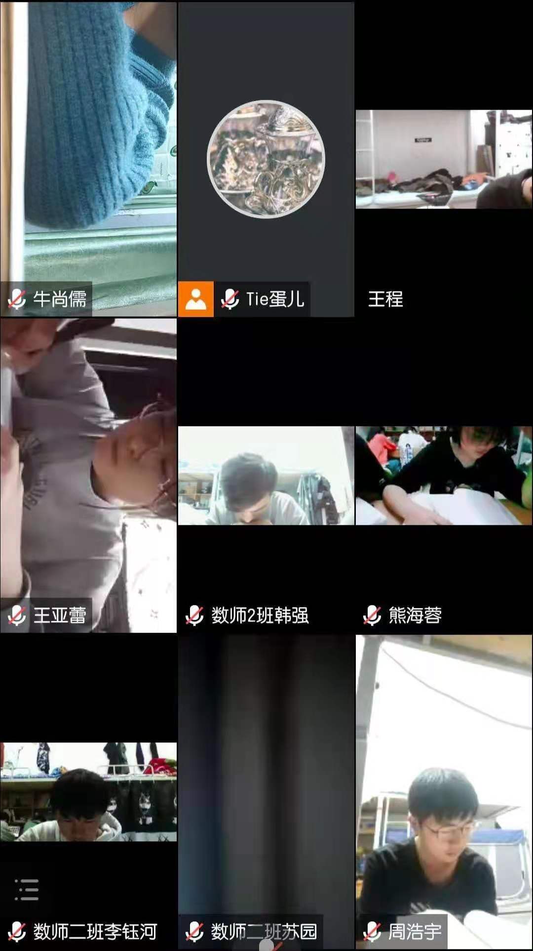目前疫情形式依然严峻,为提高线上网课期间同学们的学习效率及自主性,英国正版365官方网站于11月4日起,组织同学们通过腾讯会议APP进行线上晚自习。即使在摄像头面前学习不自在、不习惯,但同学们仍然做到了注意力集中、认真自习。宿舍也好像不再是只用来休息的地方,它好似也被“知识”渲染。自习期间,班主任也会参与进来,和同学们聊聊天,解决学习上的难题。所有的不开心都被隔着屏幕的欢声笑语抛到九霄云外。