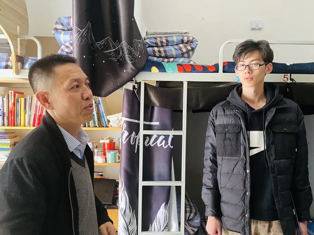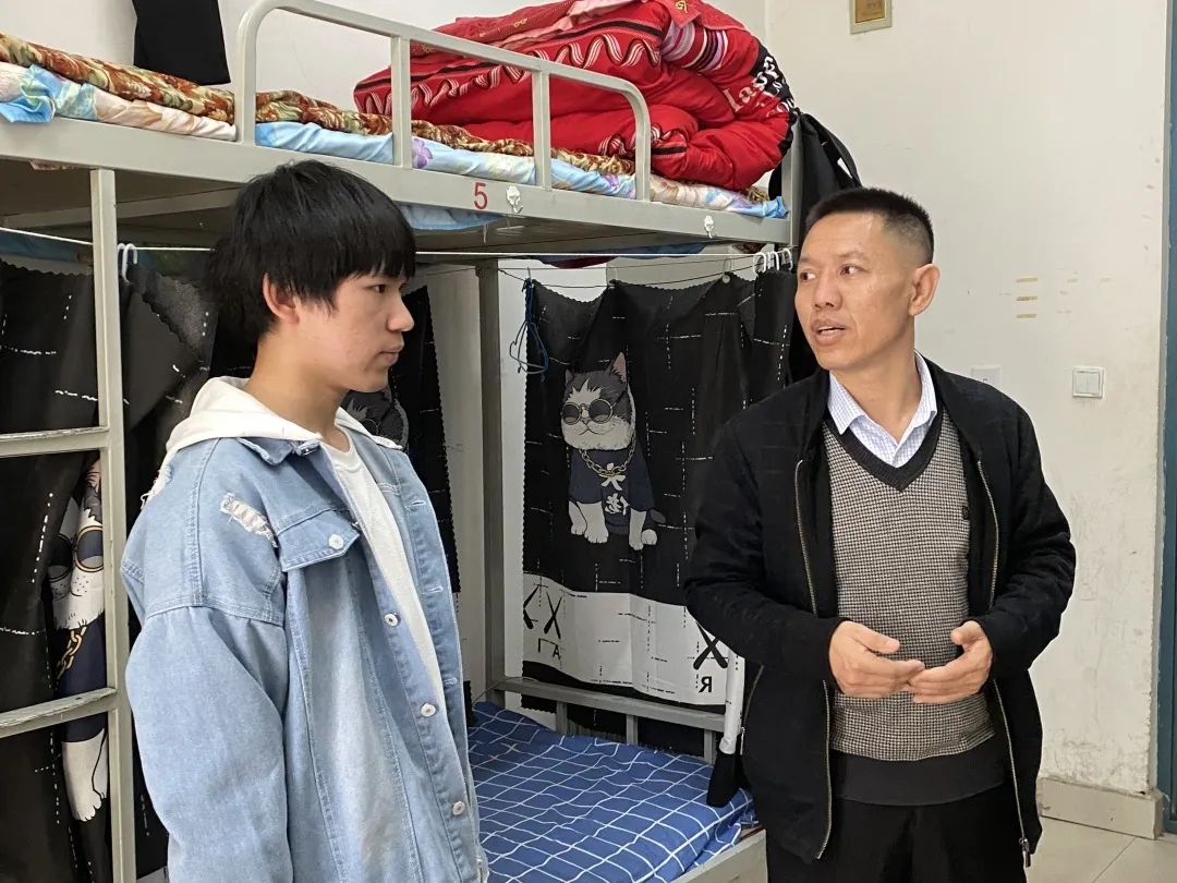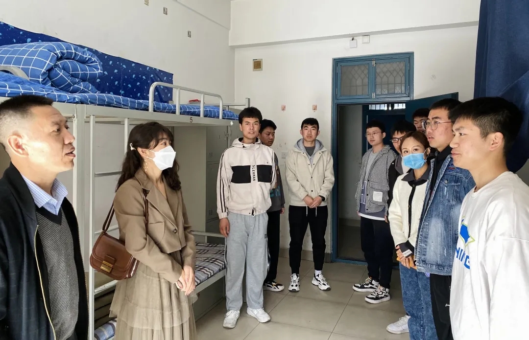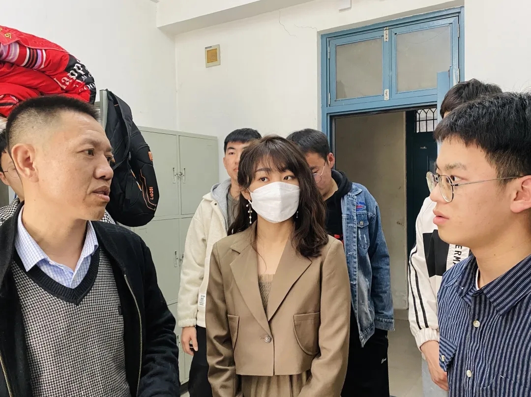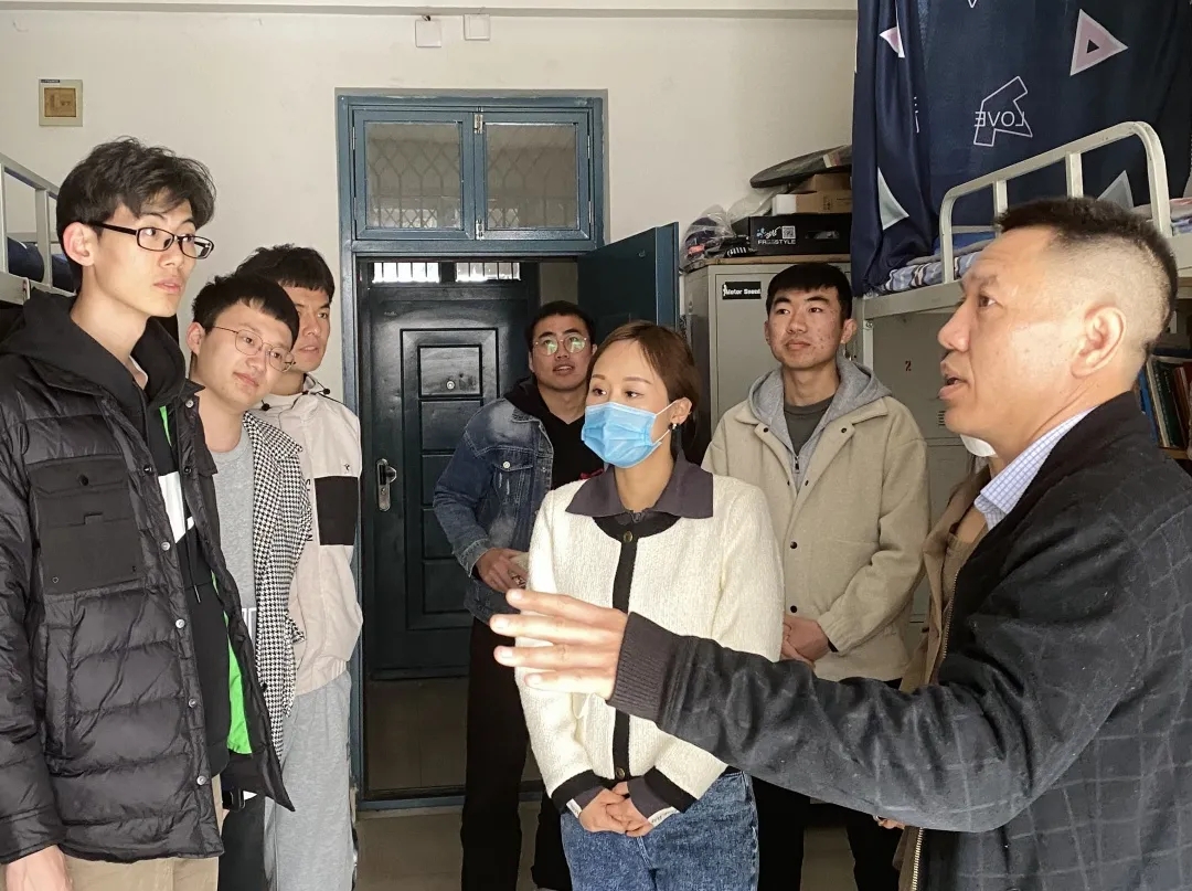 马彦峰老师查看宿舍卫生情况,了解学生生活状况以及水、电安全等问题,有针对性、目的性对宿舍出现的问题进行一一排查并解决。老师们心系学生,马彦峰老师就构建安全健康寝室与同学们进行交谈,同学们积极思考都提出自己的想法。