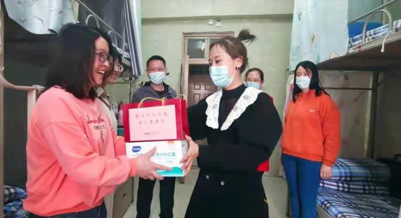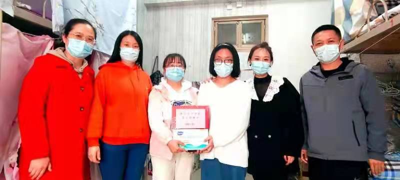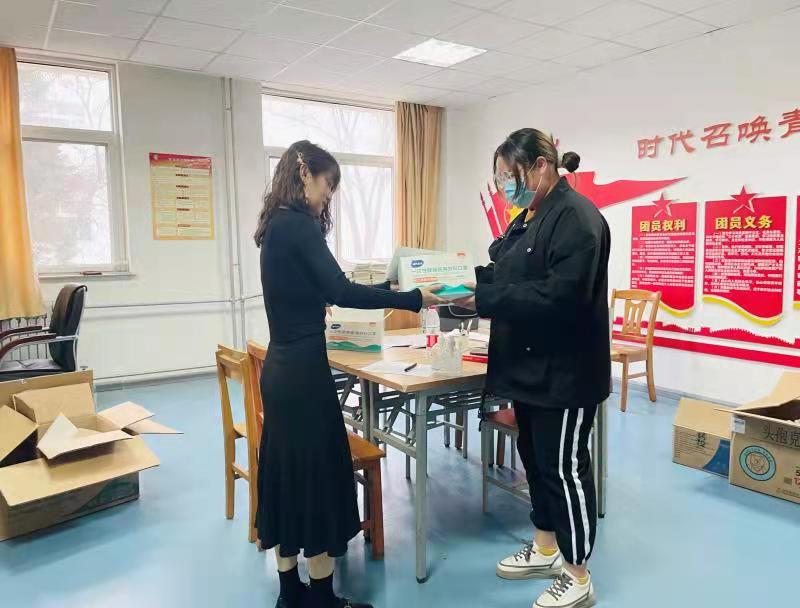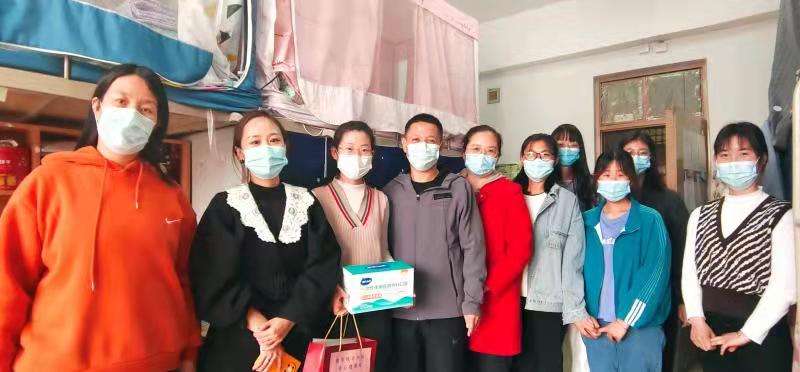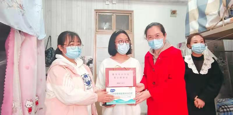 3月17日下午学院党委副书记陈建丽、马彦峰,学办主任陶佳玲、辅导员刘璐以及杨阳利用课间时间走访学生宿舍为大家发放爱心口罩、消毒凝胶等防疫物资。