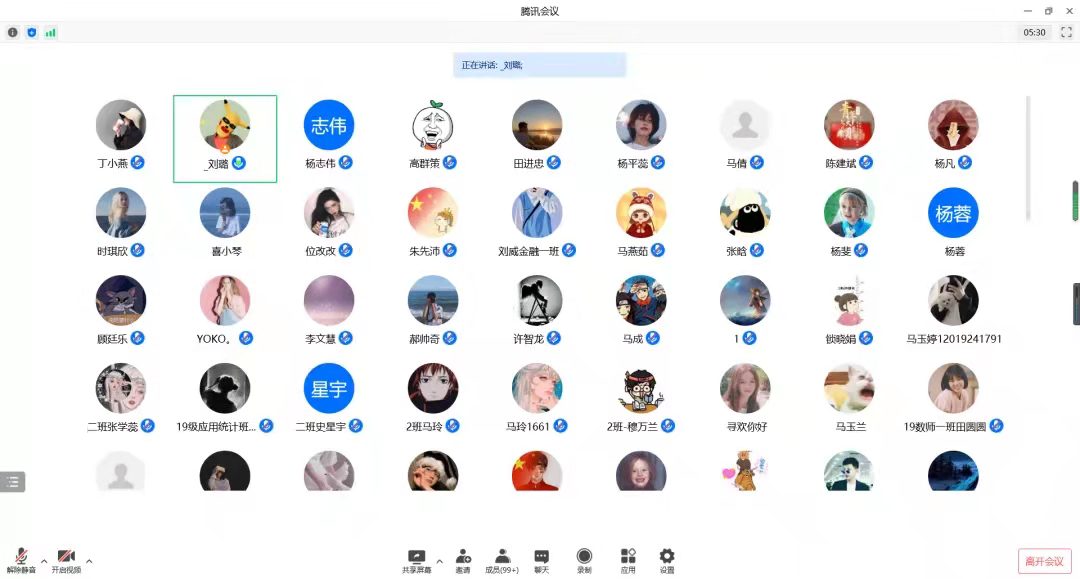 会议伊始,杨阳播放了一首歌以此来缓解同学们近日来上网课的焦虑,随后在会上针对学生比较模糊的学业规划进行了说明,鼓励学生在成绩、证书、竞赛、活动里要有危机意识、拼搏意识、方向意识,这样才能更好地实现人生价值。最后针对学生关注的疫情情况和心理调节进行了说明,希望同学们调整好作息,调节好心态,主动适应线上教学模式,并且积极参加线上活动,充实自己的学习生活。