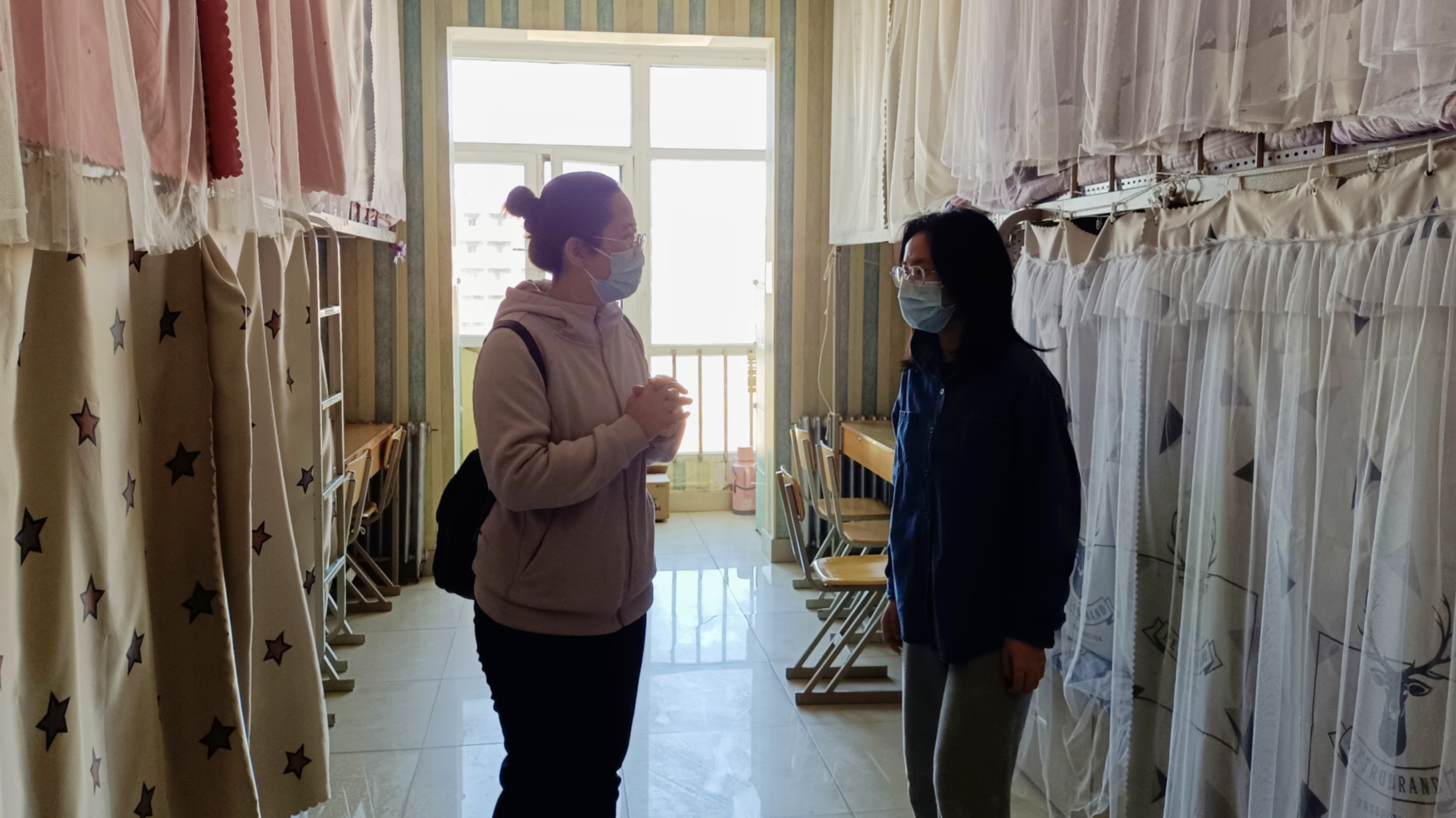 马彦峰在与学生交流中强调,近期疫情突发严峻,在学校封闭管理期间,同学们在校内一定要带好口罩,不得私自外出,非必要不请假,严禁翻墙。其次,宿舍内要注意及时开窗通风,勤消毒,做好自我卫生。同学们应该理解和遵守学校的疫情防控规章制度,更不在网上发表一些不恰当的言论,以防别有用心之人断章取义,加以利用。马彦峰还指出,同学们应该共同努力,营造出良好的宿舍环境,提供一个积极向上的学习氛围,严格遵守用水用电要求并增强防火防电意识。