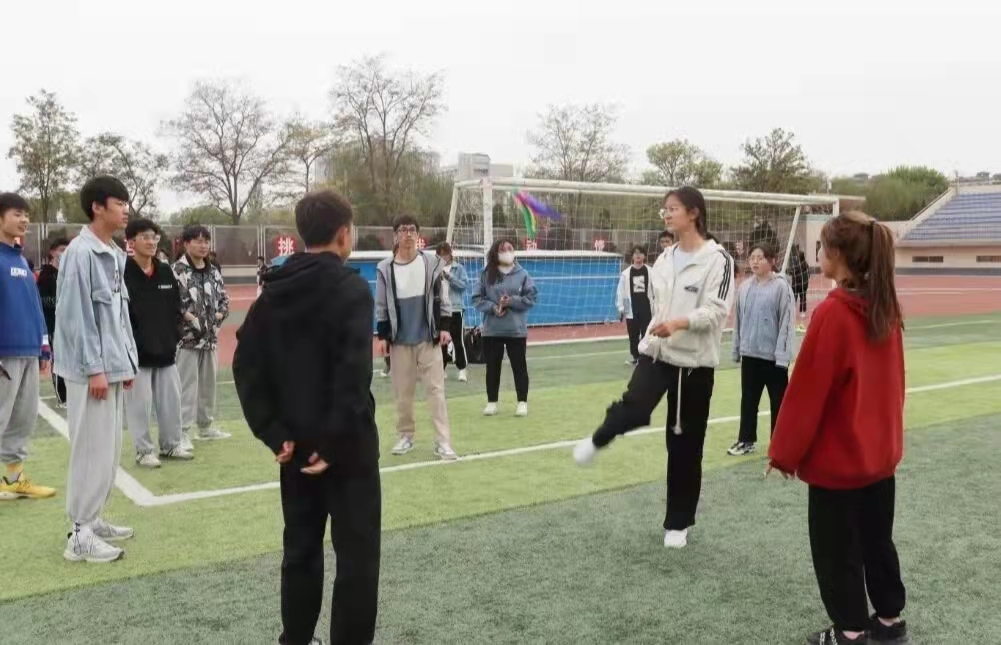 随着一声哨响,毽子在同学们的脚面上翻出一个个优美的毽圈,抬腿落腿间皆是风景。摆动的长绳如银蛇飞舞,长绳点地如铿锵鼓点。大家配合默契、节奏和谐,比赛场地上掌声、欢呼声此起彼伏,赛场一派氛围热烈的景象。