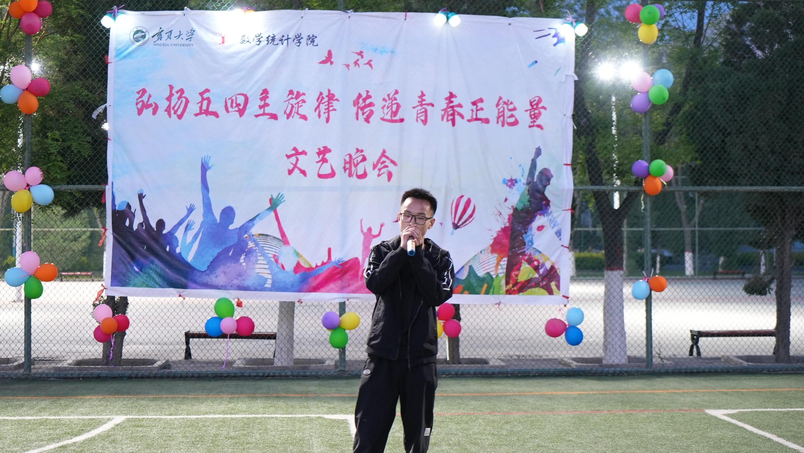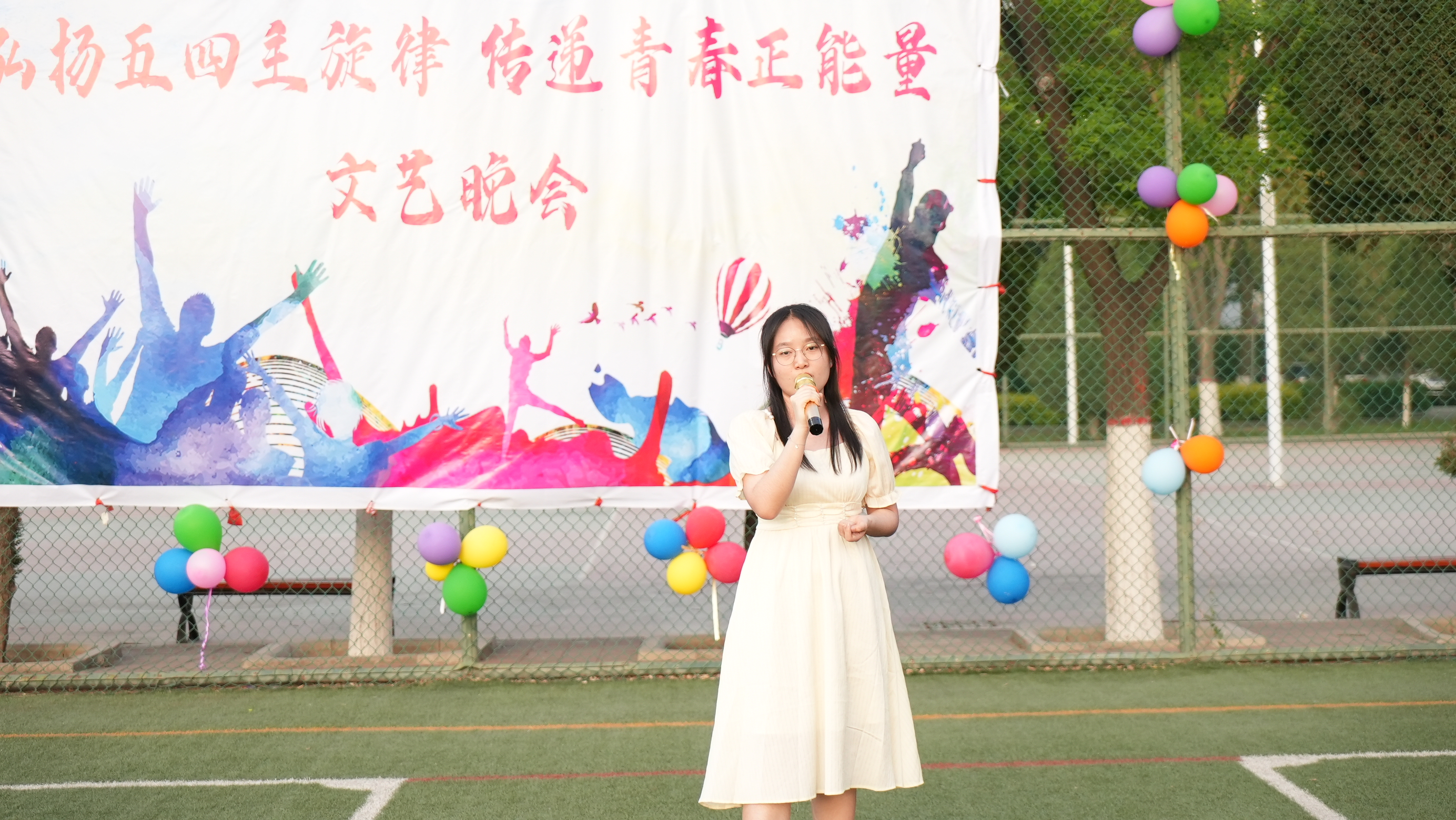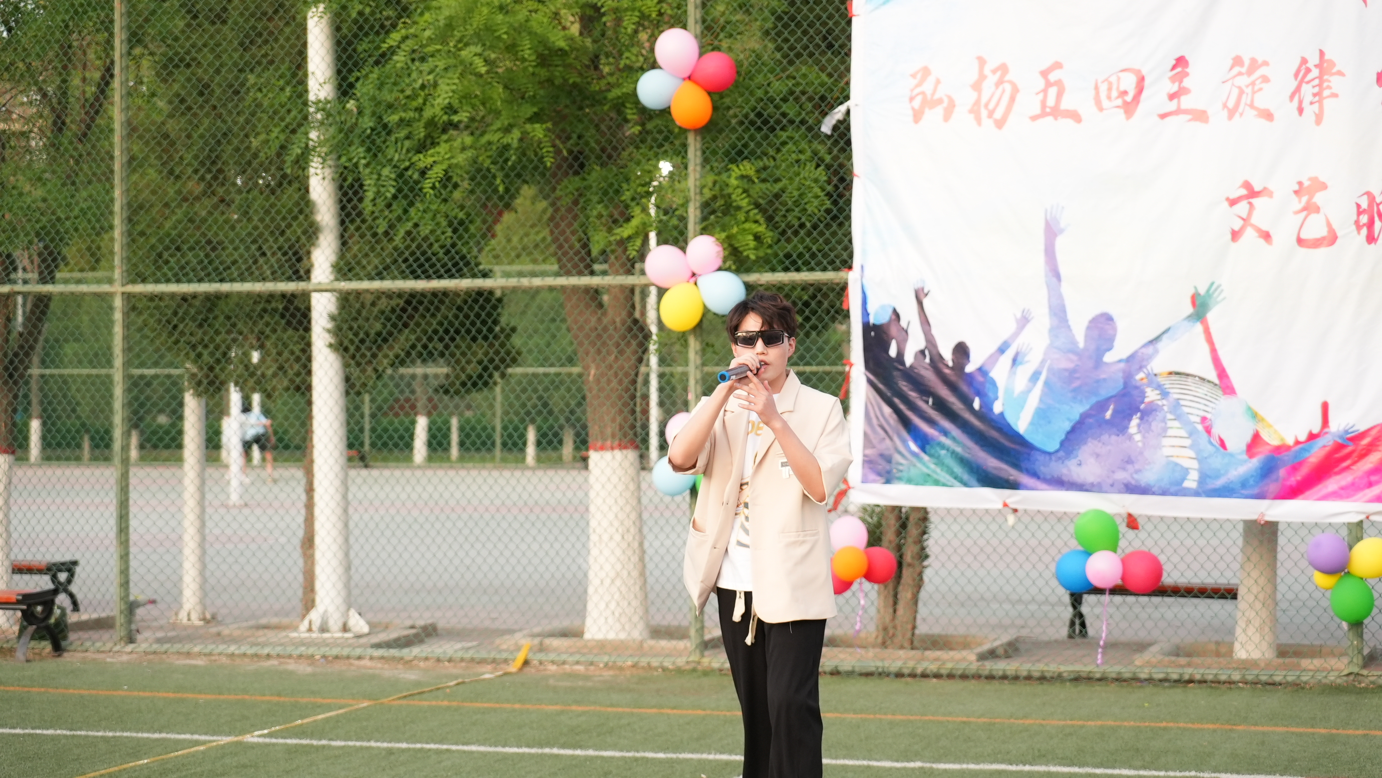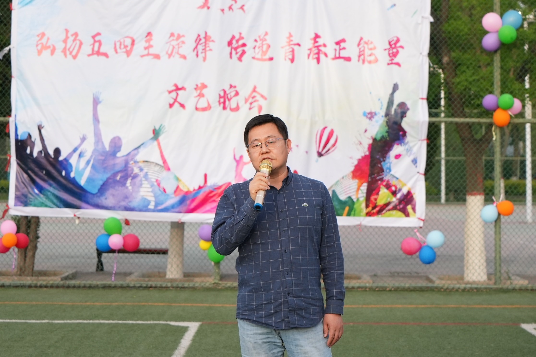 常海波宣布“弘扬五四主旋律,传递青春正能量”五四文艺晚会正式开始。
