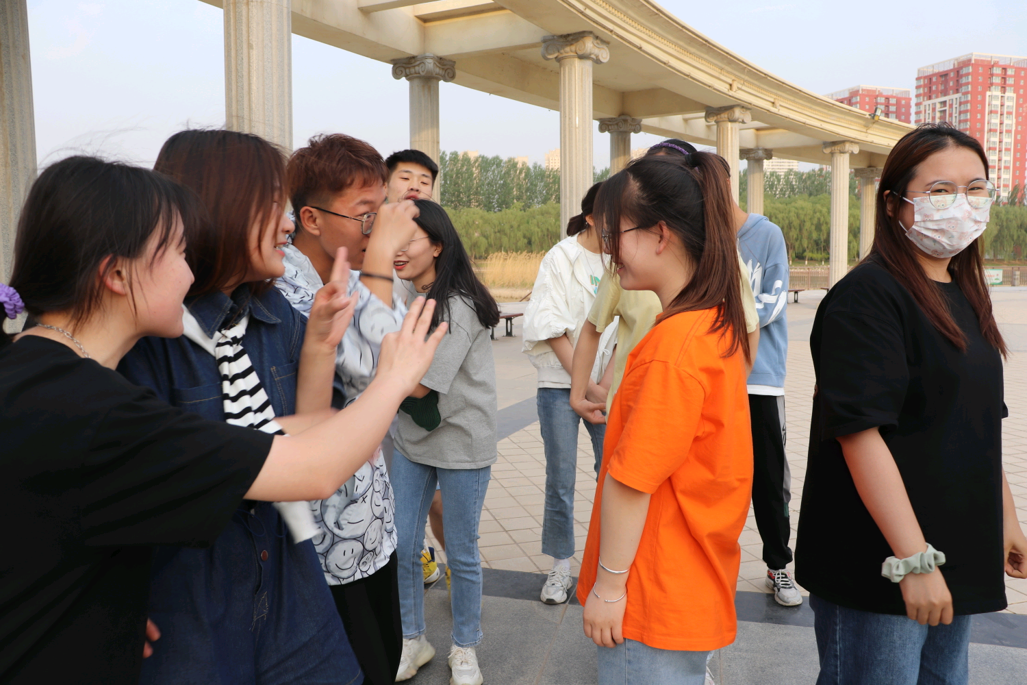 为提高同学们的合作意识,促进同学们团结协作,增强团队凝聚力,此次活动以游戏比赛形式展开,分别是“解手链”、“猜词接龙”、“蒙眼取水”、“夹球接力”、“一圈到底”,所有成员在主持人的引导下划分成5支小队参赛。活动中大家全情投入,群策群力,密切配合,互助互信,现场充满欢声笑语,加油声、呐喊声不绝于耳。