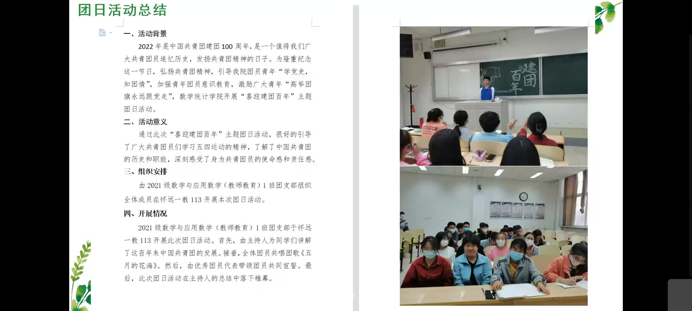 组织部负责人于佳鑫介绍了团建工作的形式、意义以及不同模式,并运用具体相关图例向同学们介绍了如何办好黑板报、操作智慧团建和团日活动的举办形式,指引了同学们如何总结团日活动,最后并对同学们的疑问进行了一一解答。