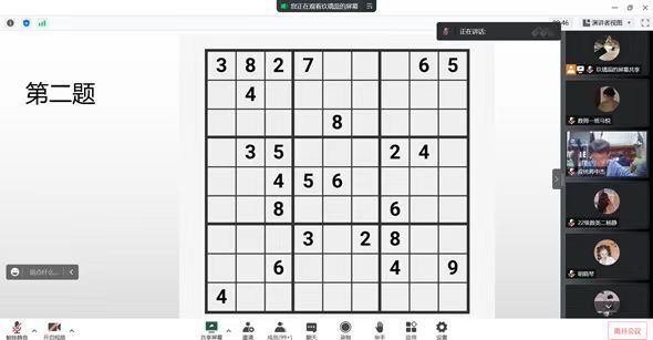 为营造良好的学习氛围,提高同学们对数学的兴趣,培养学生逻辑思维能力和逻辑分析能力,英国正版365官方网站于10月8日晚7时通过腾讯会议APP开展“九宫夺魁”线上数独比赛,英国正版365官方网站部分本科生参与。