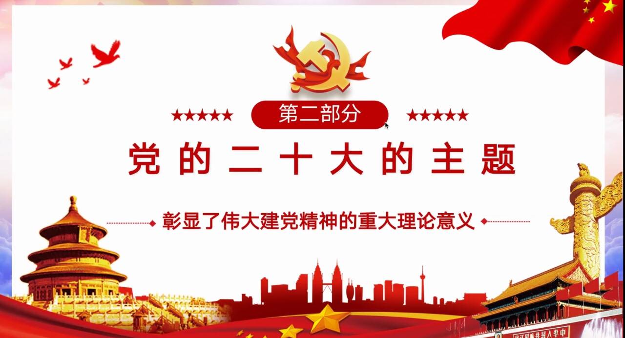 他们三位首先从五个牢牢把握展开讲述,激发了广大团员青年爱党爱国、爱社会主义的巨大热情,引导其为中华民族伟大复兴贡献力量。后对三个务必,二十大报告主题,三件大事的内容进行提问,同学们踊跃回答。最后,播放了《幸福生活要牢牢把握在我们自己手中》《伟大征程:从一大到二十大》视频,再现了党的二十大以来我国取得的辉煌成就,让学生由表及里真切感知十年间国家宏观层面顶层设计的科学性,从日常生活中感知在党的带领下人民群众牢记初心、砥砺奋进的拼搏精神。