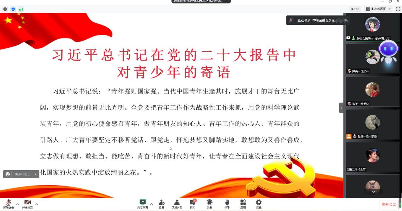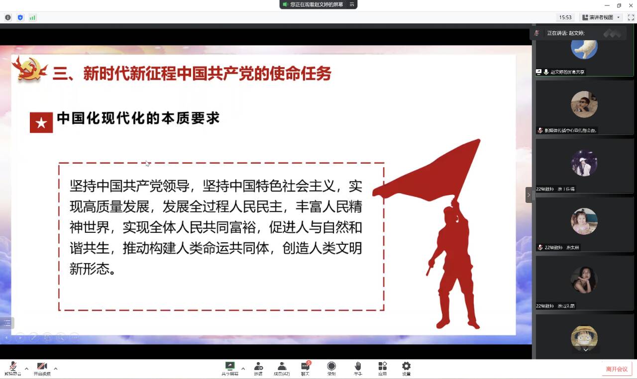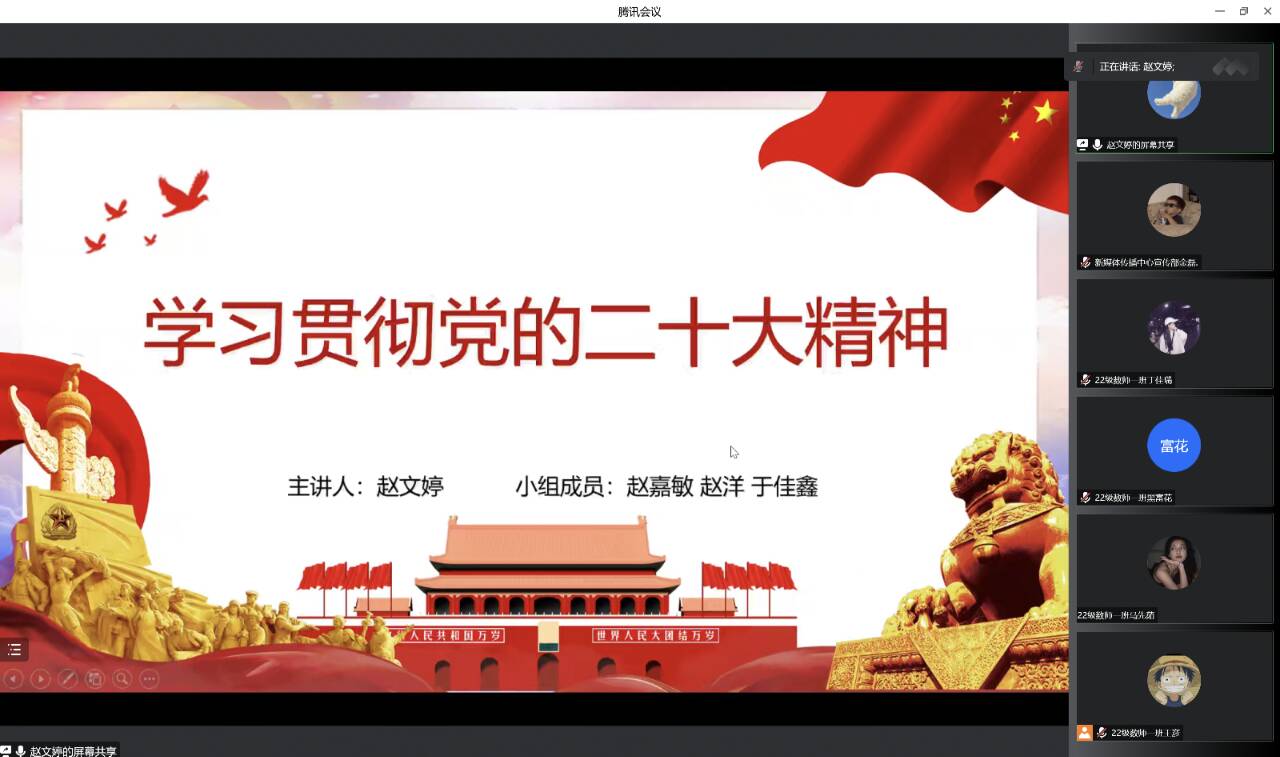 赵文婷带领大家深入学习党的二十大报告内容和精神,引导同学们坚定理想信念,自觉将党的二十大报告内化于心、践行于行,把人生理想融入国家和民族发展的伟大“中国梦”之中,让理论之光、思想之火,照亮新征程上奋进的脚步。