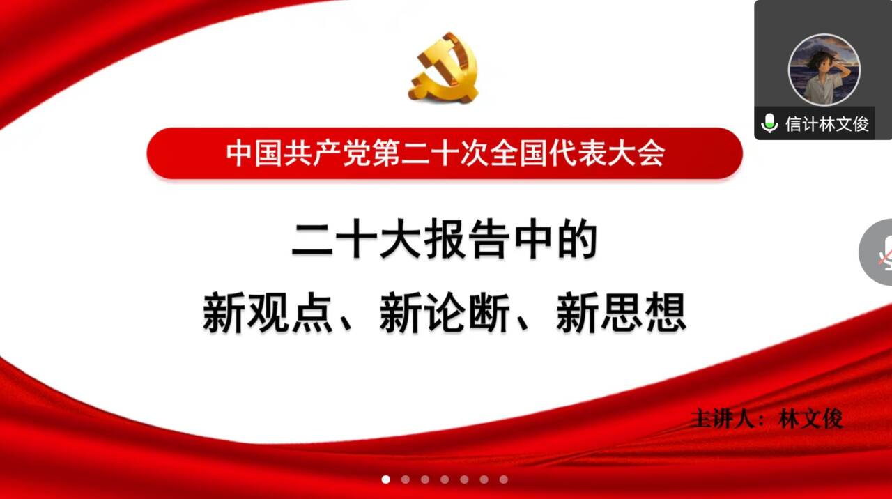 林文俊带领同学们学习了二十大报告中的新观点、新论断、新思想,从三个务必讲到十年来三件大事,从党的中心任务讲到中国式现代化五个特色,同学们热情高涨,积极回答问题,一致认为要争做有理想、敢担当、能吃苦、肯奋斗的新时代好青年。