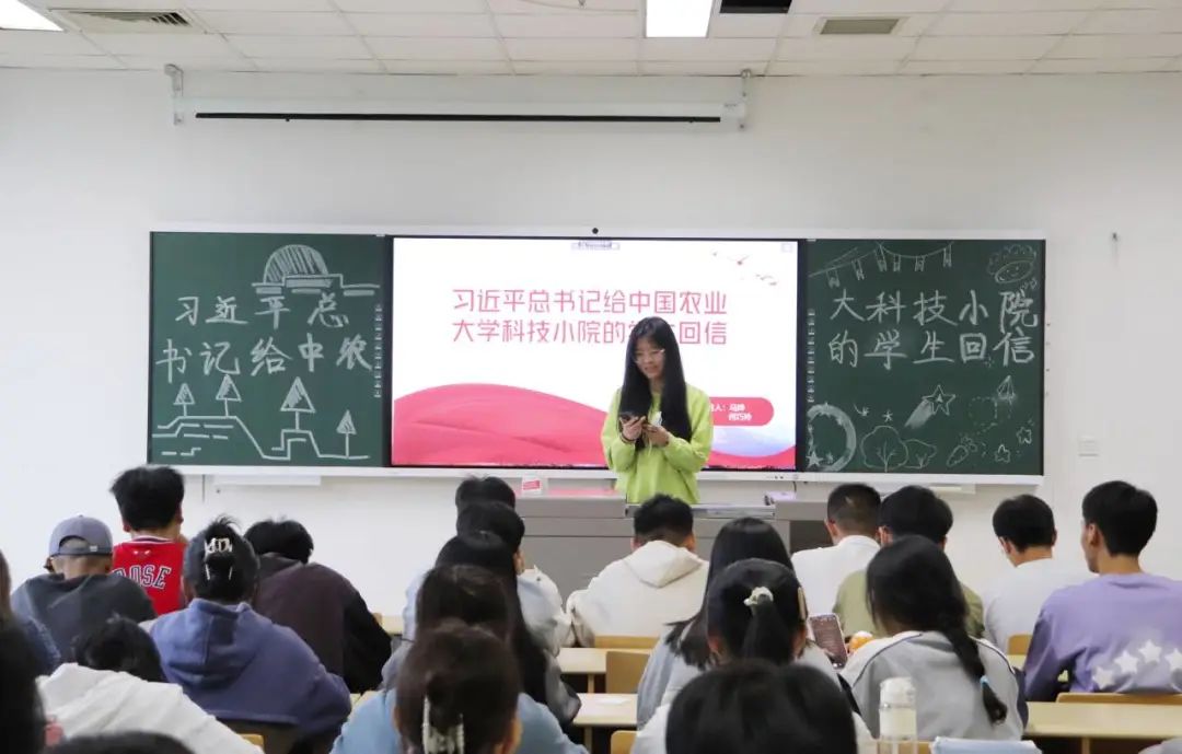 活动伊始,各支部主持人介绍了此次团日活动的主题,带领同学们学习习近平总书记给中国农业大学科技小院的学生回信的内容,同学们反响热烈,大家纷纷表示,回信饱含着习近平总书记对广大青年的深切关爱和殷殷嘱托,是新时代青年成长成才的行动指南,要以更加奋发有为的精神状态和一往无前的奋斗姿态,积极投身现代化建设。活动最后,各班主持人通过小游戏等方式进一步加深了同学们对此次回信精神的理解。