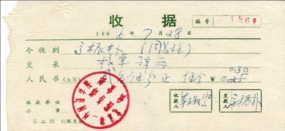 1966年周恩来在北京第二外国语学院用餐后付费的收据。照片由周恩来邓颖超纪念馆提供